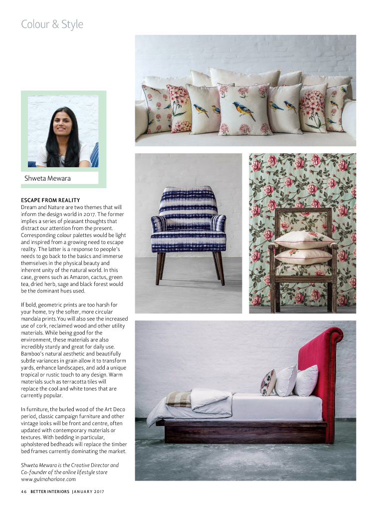 Determining Decor 2017! As the new year begins, Better Interiors focuses on the trend that will rule the interior decor world in 2017. So, let's acquaint ourselves with the two main themes for next year, Dream & Nature.