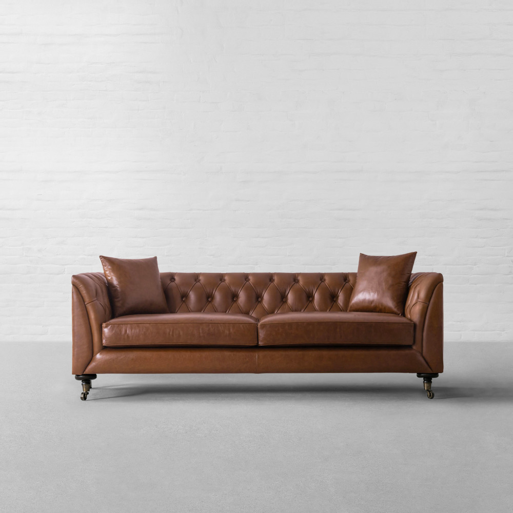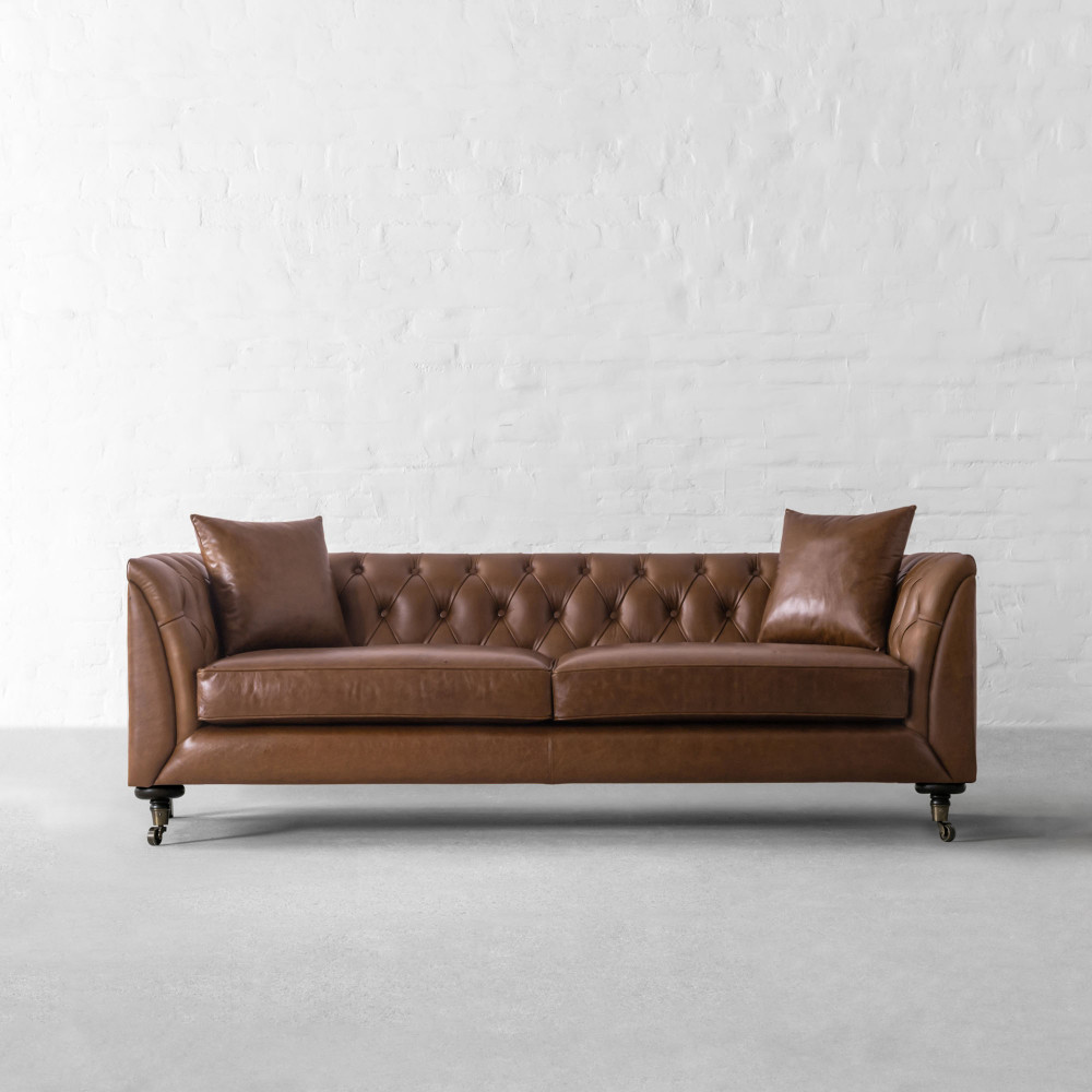 Perfectly suited to living rooms or environments furnished in a classic style. A few examples are Chesterfield Sofa, Regiment Sofa & the Cambridge Sofa entirely worked in classic rolled arms and diamond-tuft backs with leather buttons brings in enormous charm to your living room and is a handcrafted masterpiece by one of our 4th Generation sofa artisans.