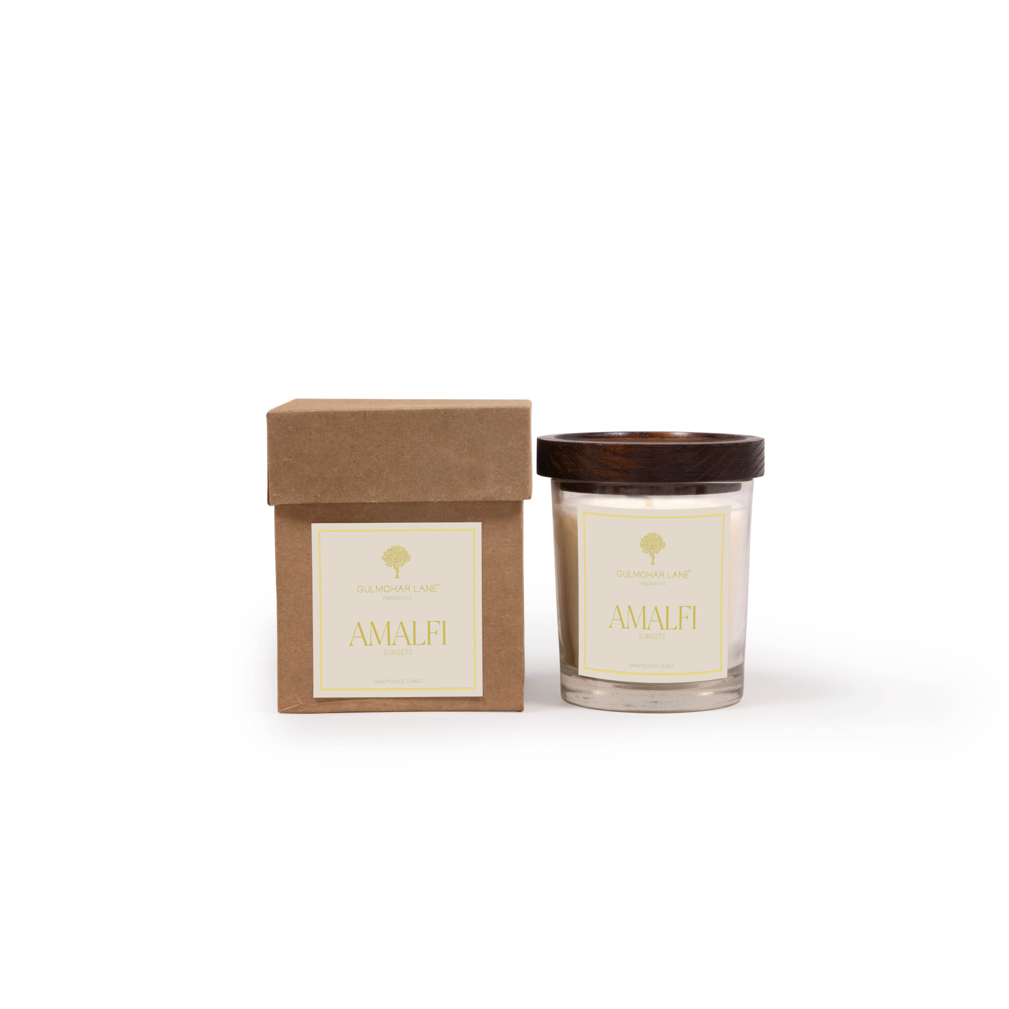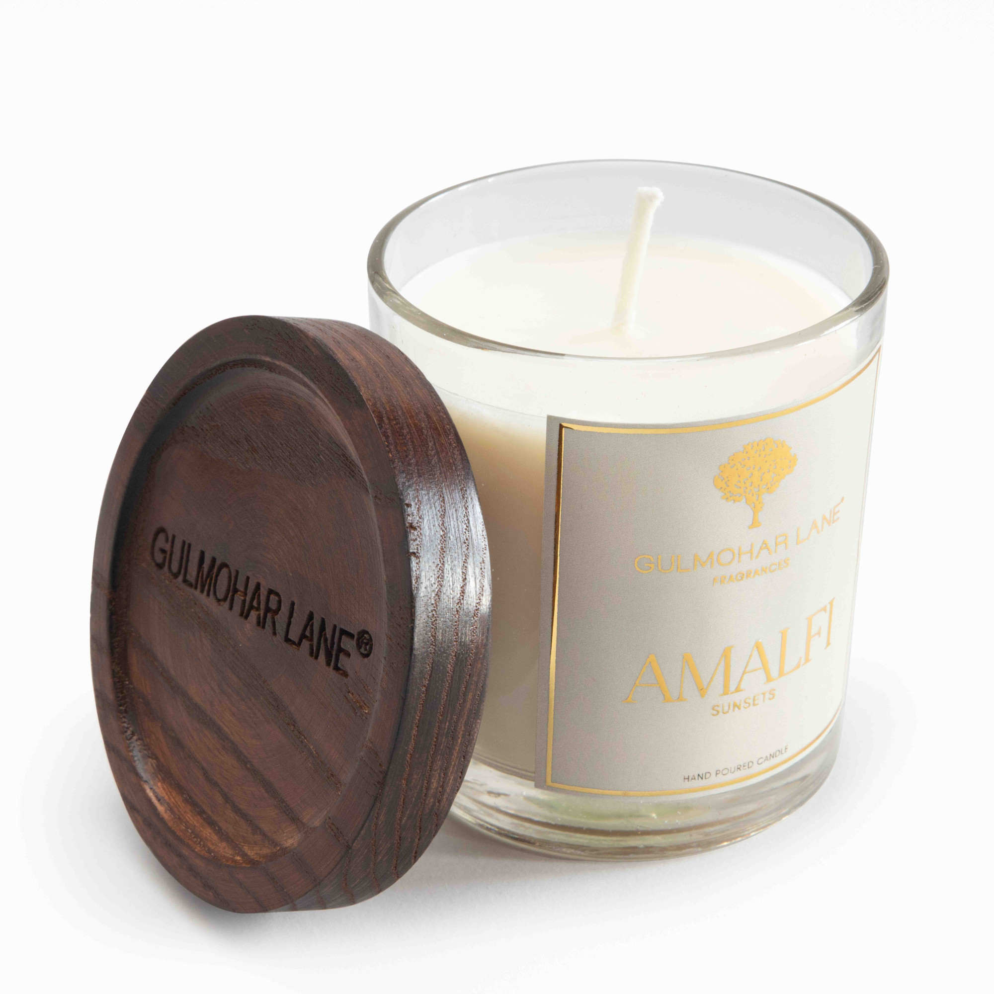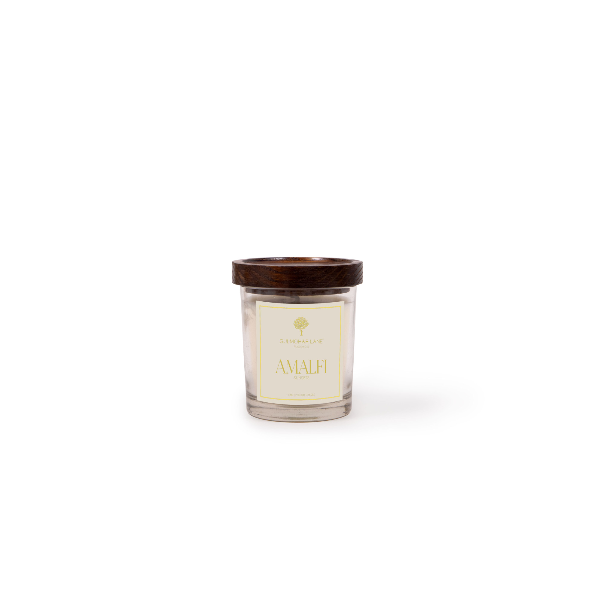 Our Amalfi Sunset Candle pairs a clear glass jar with a solid wood lid, bringing a subtle elegance to any space. The fragrance captures the Amalfi Coast at dusk, where sundown reflections of golden skies melt into the sea, and a breeze is laced with sparkling freshness. This radiant hour, when the world slows and every detail feels touched by magic, is carried by the crisp, lively note of bergamot, bright yet soothing, uplifting yet serene. Amalfi Sunset is a portrait of la dolce vita, carefree, luminous, and forever kissed by the horizon, perfect for a marble console, a sunlit bedside table, or an outdoor terrace. Its natural wood lid and clear glass harmonize beautifully with both modern minimalist and cozy, layered interiors.