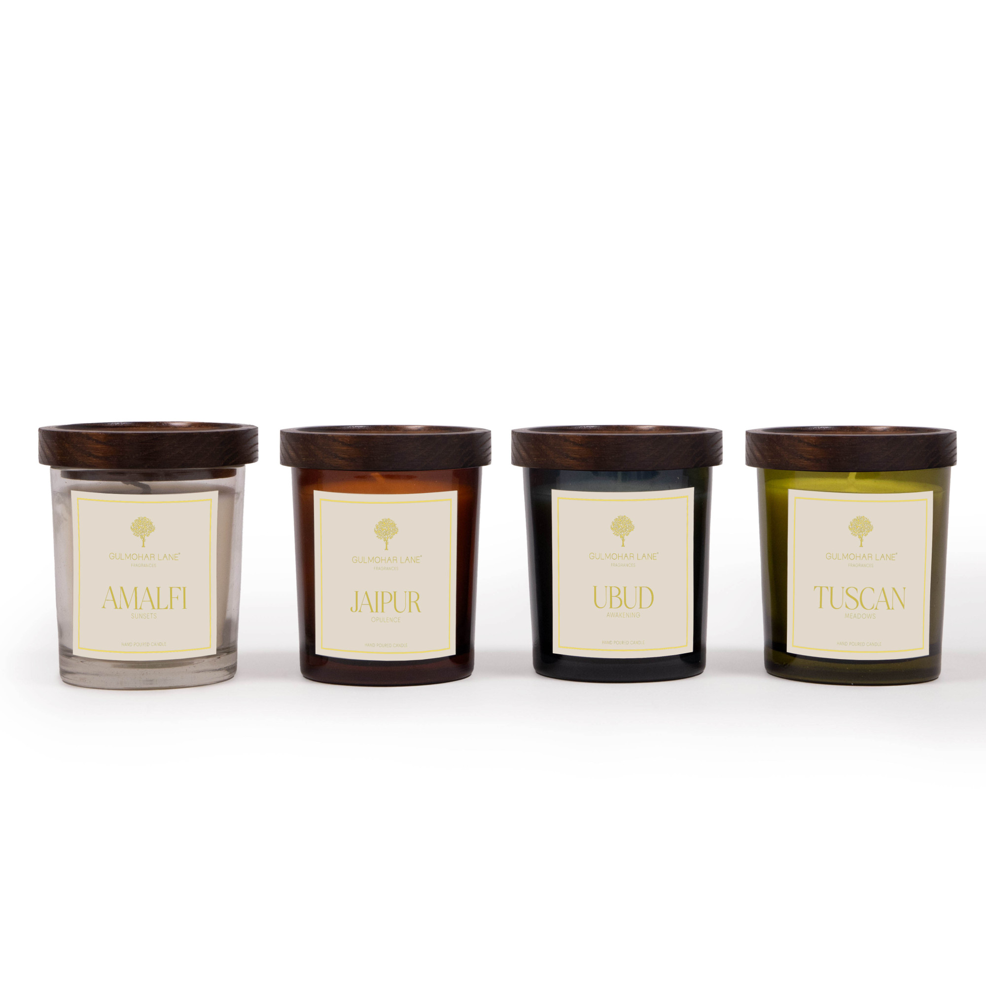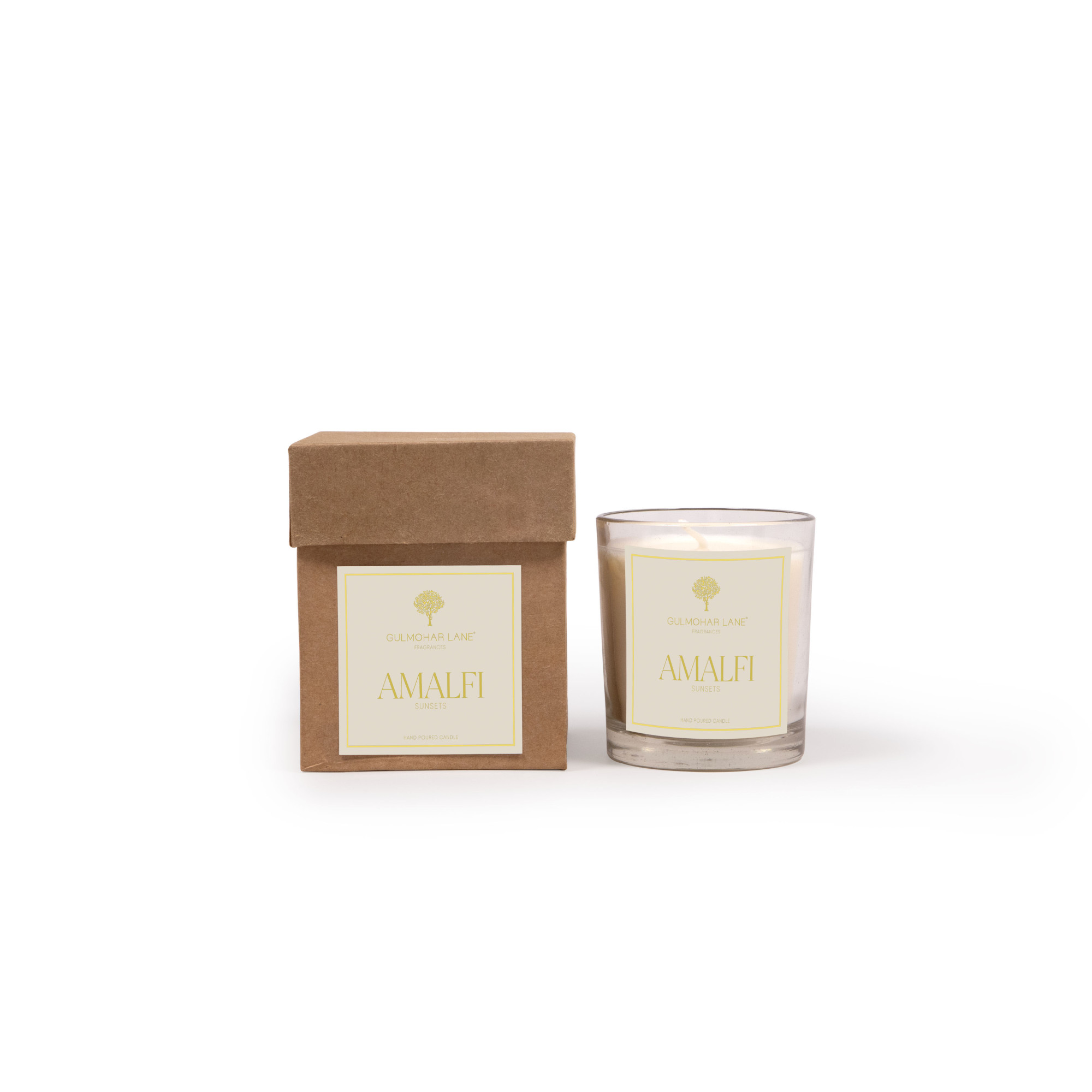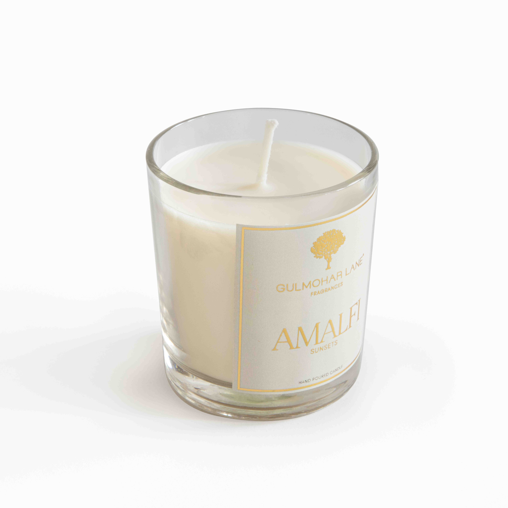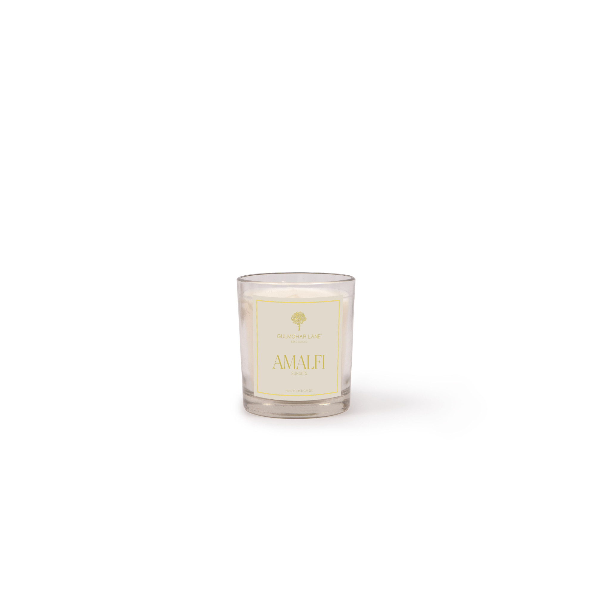 Our Amalfi Sunset Candle pairs a clear glass jar with a solid wood lid, bringing a subtle elegance to any space. The fragrance captures the Amalfi Coast at dusk, where sundown reflections of golden skies melt into the sea, and a breeze is laced with sparkling freshness. This radiant hour, when the world slows and every detail feels touched by magic, is carried by the crisp, lively note of bergamot, bright yet soothing, uplifting yet serene. Amalfi Sunset is a portrait of la dolce vita, carefree, luminous, and forever kissed by the horizon, perfect for a marble console, a sunlit bedside table, or an outdoor terrace. Its natural wood lid and clear glass harmonize beautifully with both modern minimalist and cozy, layered interiors.