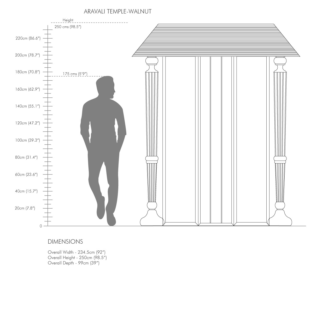 234cm W x 99cm D X 250cm H (92" W X 39" D X 98.5" H)