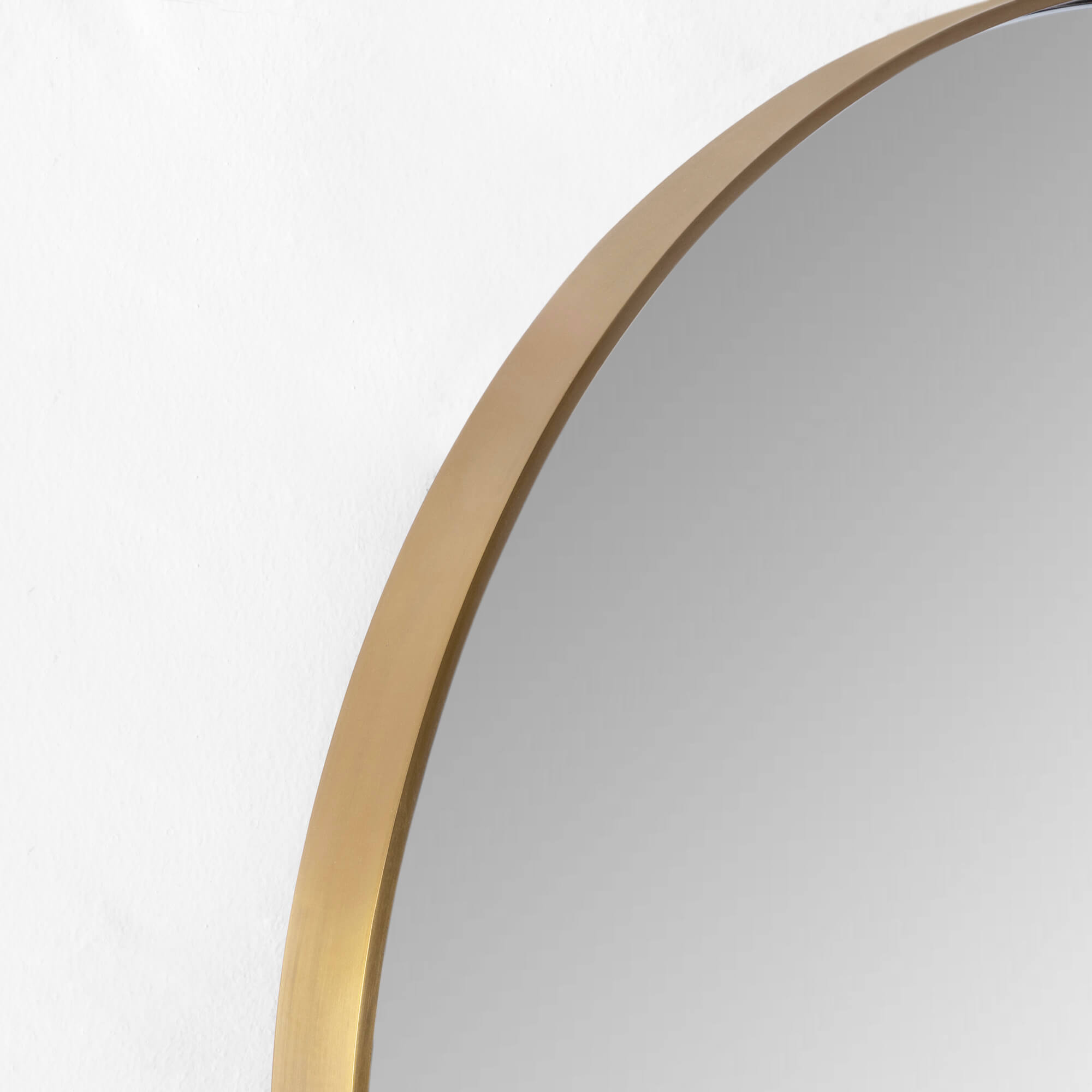 A similarity with mid-century décor with a taste for minimalist orientation and yet offering a fresh appeal, our Arden Mirror collection adorns a bent rimmed edge that adds a Gatsby-glam to spaces while magnifying its affinity with opulence. Seen here is our Arden Oval Mirror that may adorn your spaces as a floor mirror glamor your living space.
