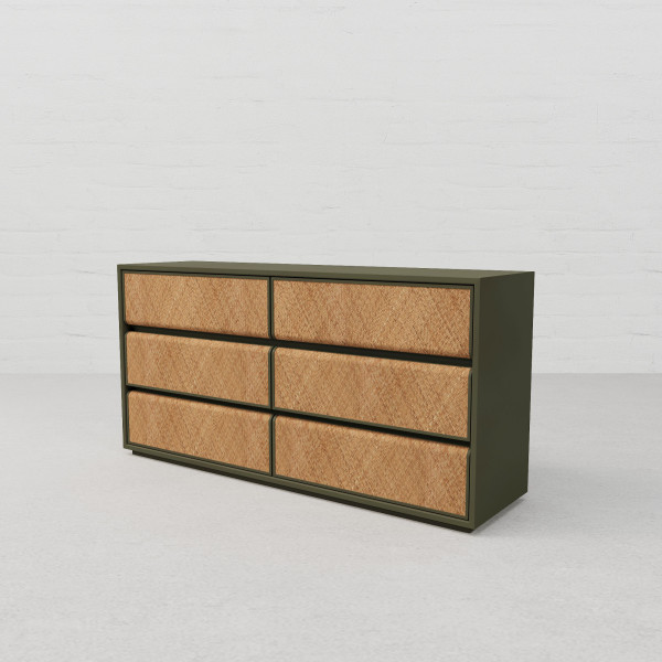 With its stunningly simple and symmetrical facade, our Assagao Chest of Drawers embodies a delightful blend of craftsmanship, style, and function. Infused with the essence of handmade rattan textures and Scandinavian utilitarian design, this exquisite chest seamlessly marries rustic charm with modern functionality. Its clean silhouette beautifully complements the delicate raw rattan embellishments on the six spacious drawers, while their rounded edges allow for seamless handling. The minimal ensemble and magnanimous proportions of this chest thus offers ample storage for resting all your belongings in one place. Accentuate our Assagao Chest of Drawers with your favourite reads, family portraits and other personal items to make it your own.