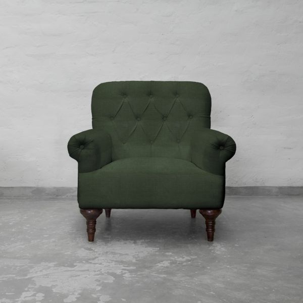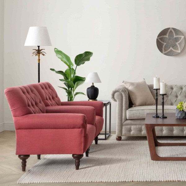 Both comfortable and charming, Gulmohar Lane's Brera Chair offers style statement to any living space. Apartment friendly, stocked in hand tufted back, comfortably sized fixed seat and pleated arms finished with fabric buttons, you can make it your own by customizing from our extensive fabric range.