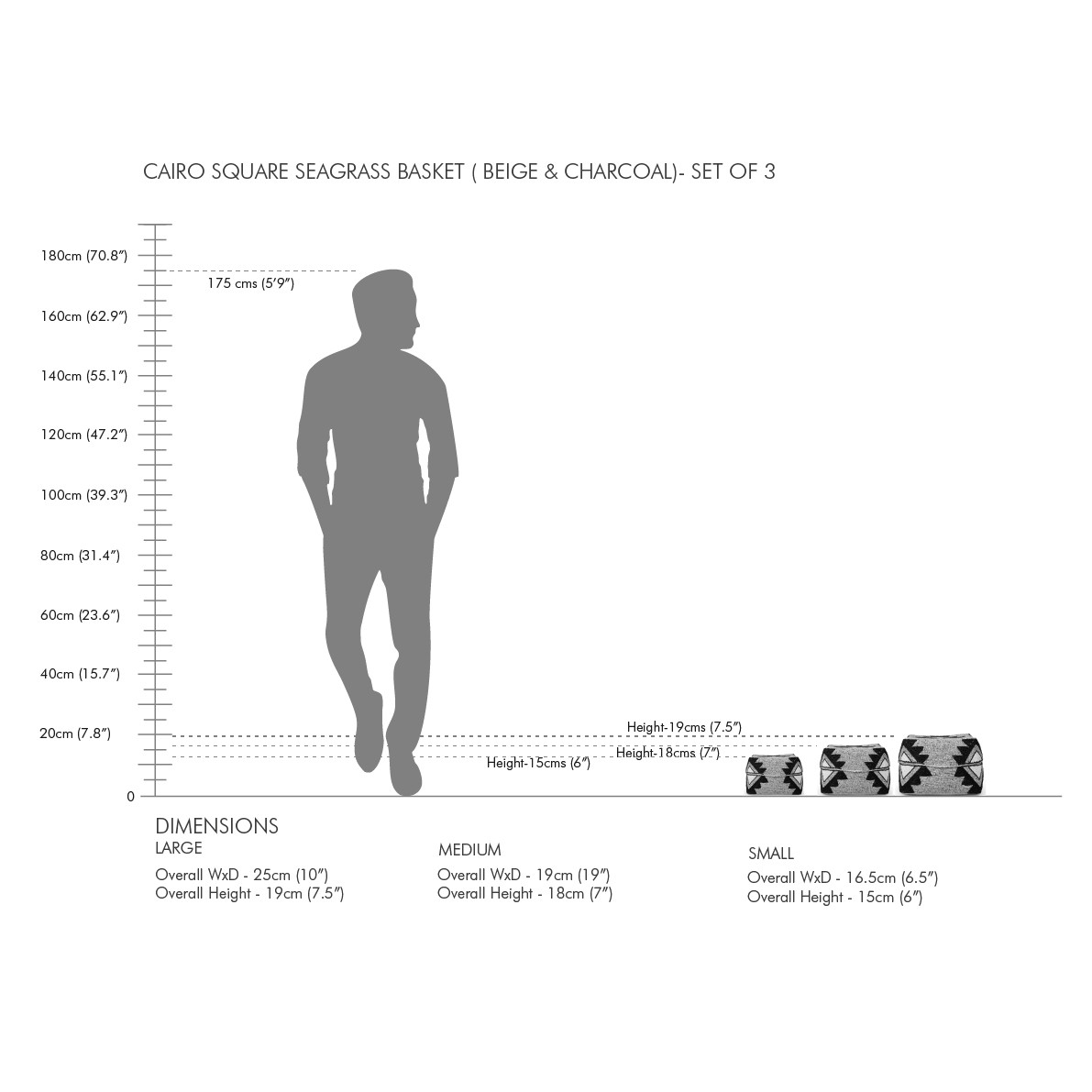 Large: 25cm W x 25cm D x 19Hcm H