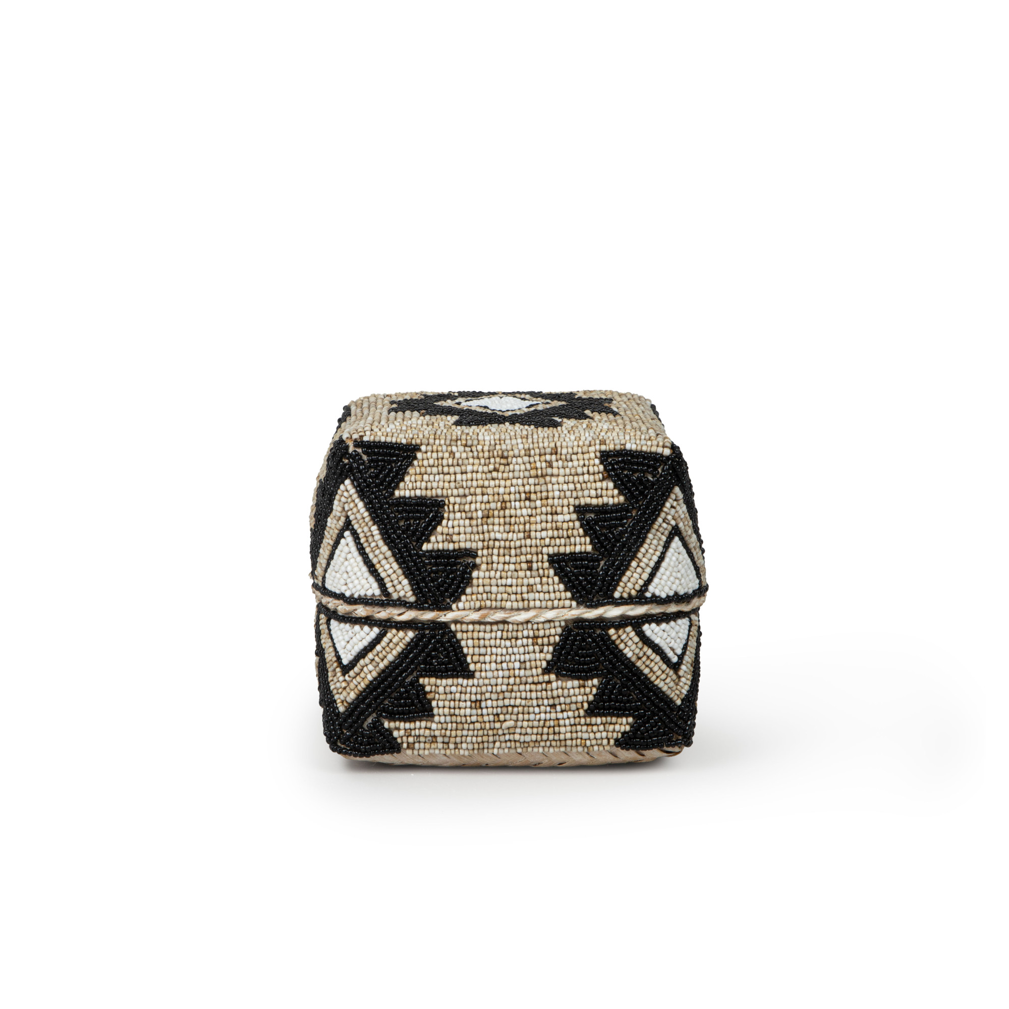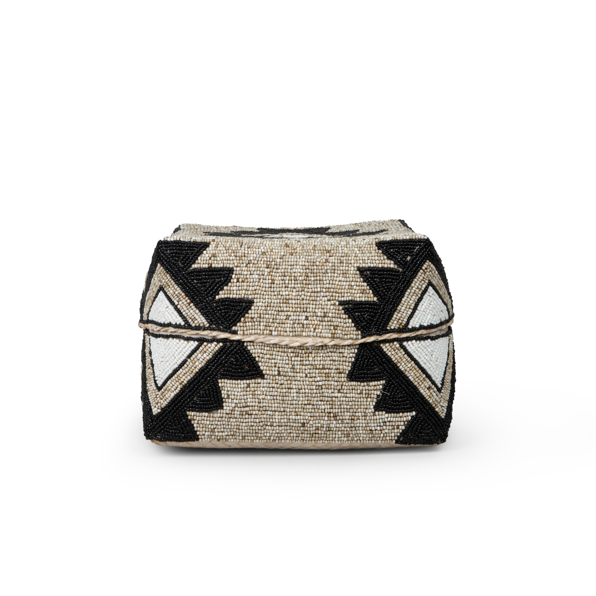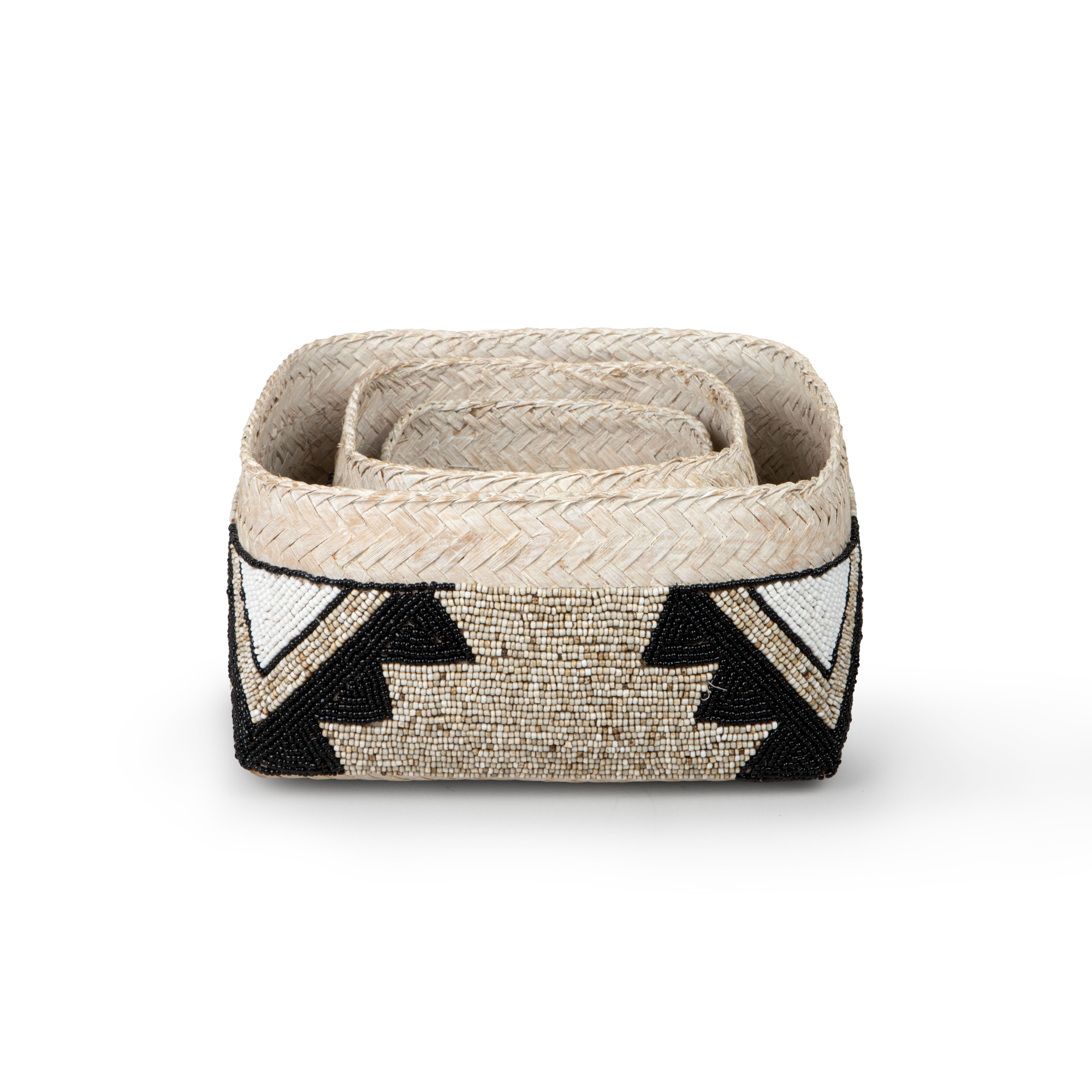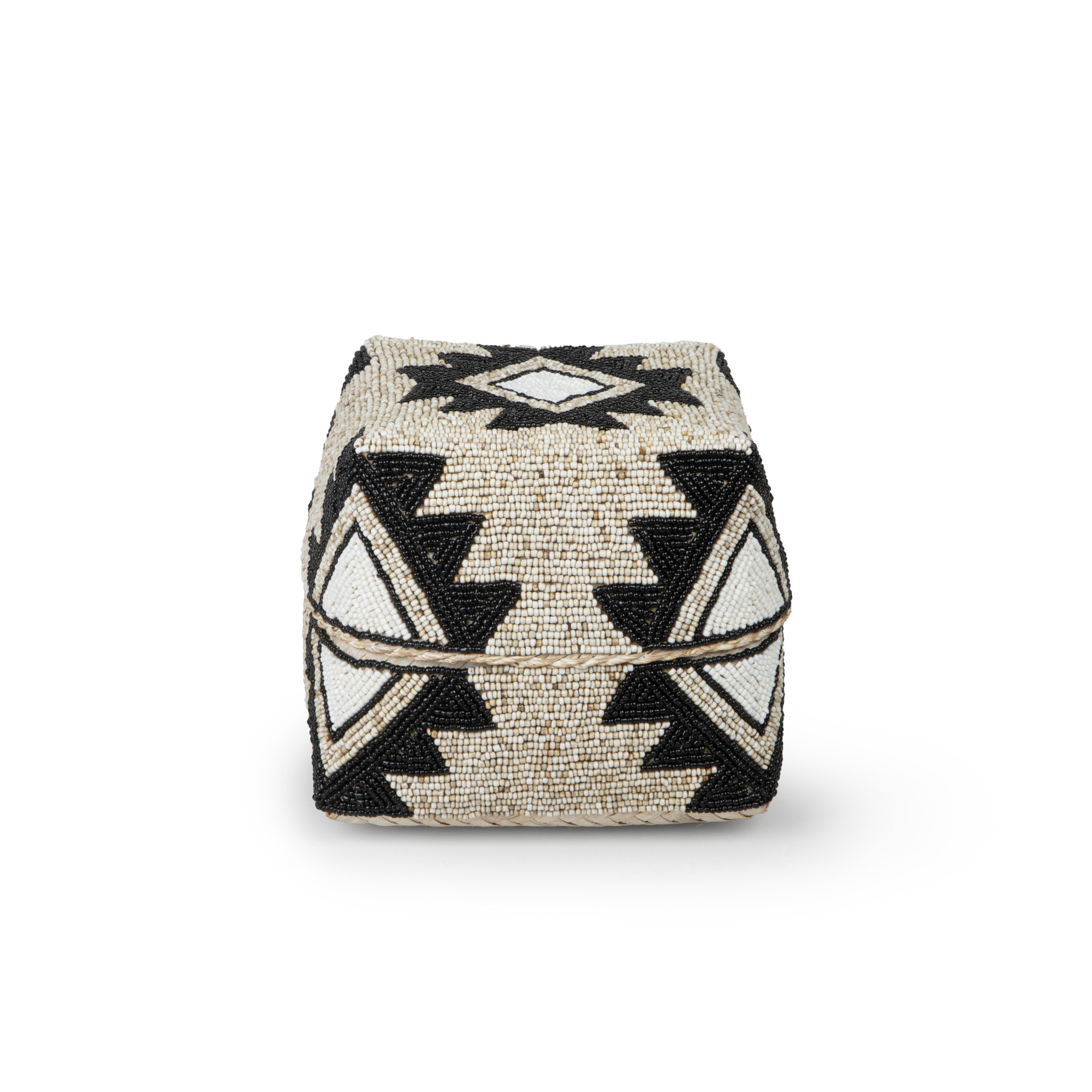 Behold the captivating Cairo Square Seagrass Basket in Beige & Charcoal beadwork, an exquisite work of art that exudes charm and sophistication. Fashioned from the finest seagrass, this basket boasts a geometric pattern and is intricately woven with beige, ivory, and black glass beads, which is a testament to the artisan's mastery of their craft. The intricate design, with its interwoven strands of seagrass, creates a striking contrast that delights the eyes and ignites the imagination. The meticulous attention to detail is apparent in every weave, as the basket's corners are expertly squared, lending an air of geometric precision that is both contemporary and timeless. Whether used as a decorative accent or a functional storage solution, this piece is sure to add a touch of elegance and refinement to any space.
