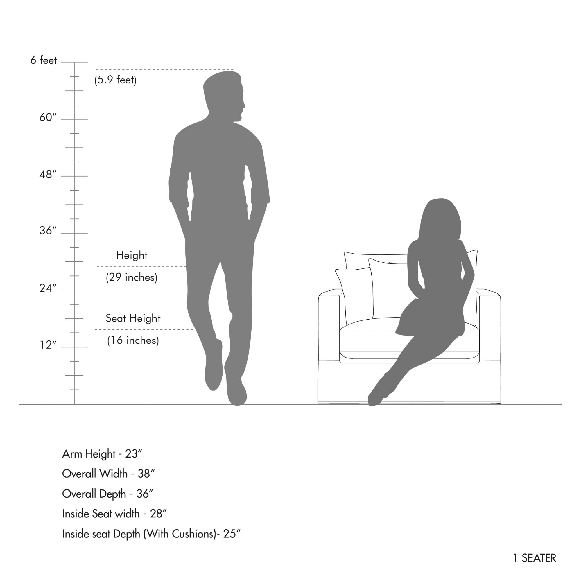 1 Seater: 096cm W x 91cm D x 74cm H (38.1" Width x 35.8" Depth x 29.1" Height)