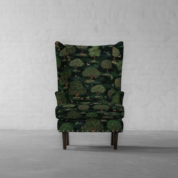 A beautifully serene scene, bathed in the deep hush of a Monsoon Night, glazing in dramatic, timeless hues. Our Starlings at Rose Garden - Monsoon is an ode to the moment when the rain has passed and the night deepens, with a rich, dark green base that captures the saturated, velvety foliage of a garden after a downpour. It is when the flaps of a starling softly settle and the British roses gleam in muted reds and hushed pinks against the intense background, the gardens becoming quiet and resting to the sounds of nature’s tranquility. Bring a vibe that reverberates the gorgeous depth of nature and dawns on a peaceful future. Our starling in the garden upholstery collection brings with it a cool familiarity and richness that are calming and inviting, yet offer a refreshing tone.