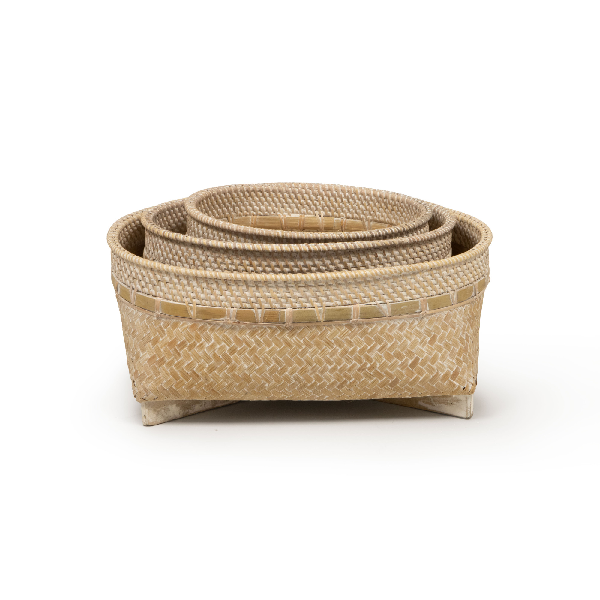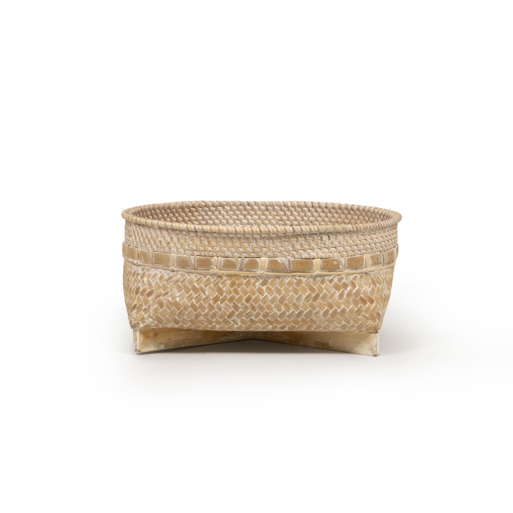 Meticulously handcrafted with a blend of cane and rattan, our Cebu Handwoven Fruit Basket beautifully merges functionality with coastal-inspired charm, bringing a natural, tactile appeal to your home. The sturdy bamboo frame and crisscross wooden base offer strength and stability, ensuring your fruits or decorative accents rest securely. A delicate white-wash treatment lends them a soft, bleached finish, enhancing their light hue and rustic texture. This earthy composition beautifully channels a breezy, island living feel. Effortlessly functional and strikingly decorative, these baskets will become a versatile accent on your kitchen island, dining surface, or entryway console.