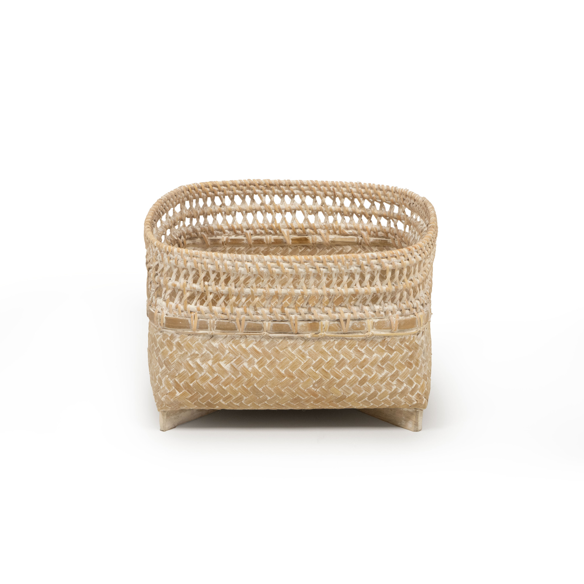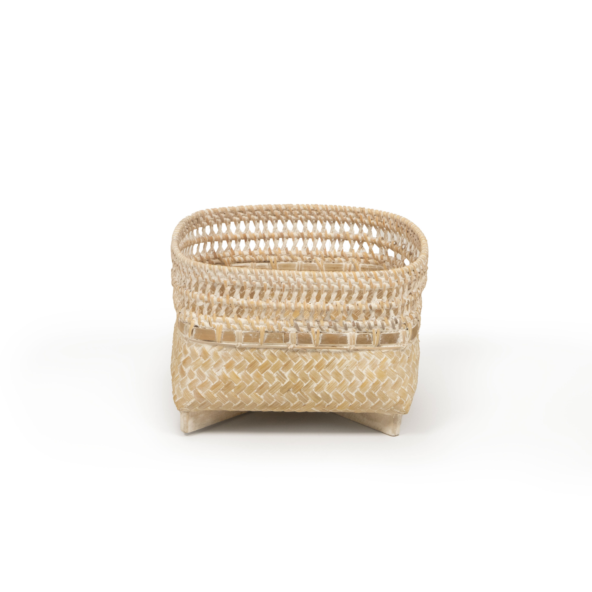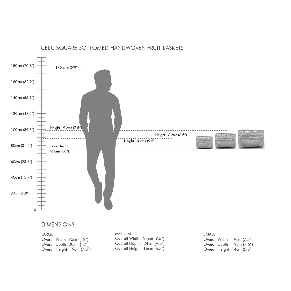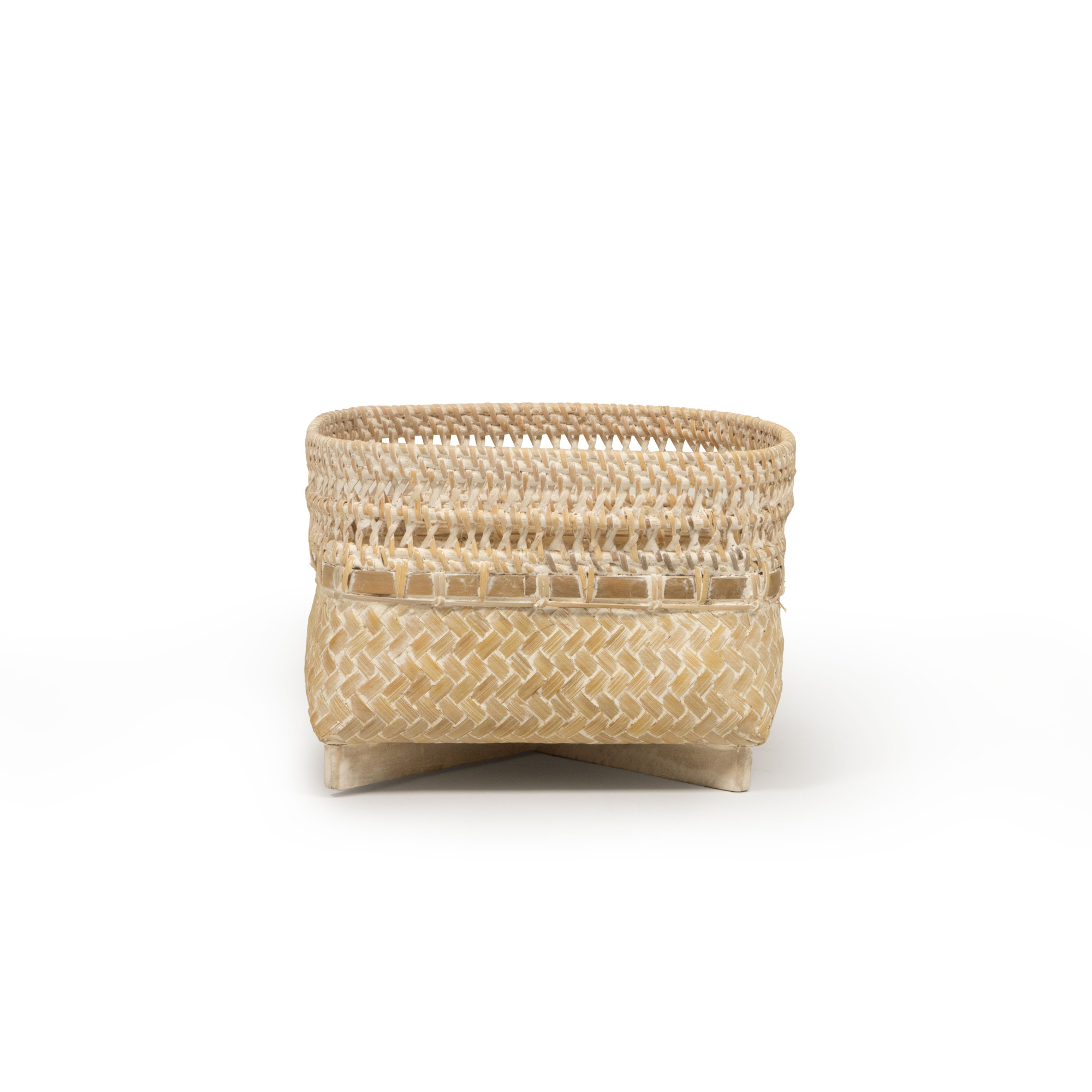 Handwoven to perfection,our Cebu Square Bottomed Fruit Basket captures the quiet beauty of old technique craftsmanship. Each basket is skillfully crafted with dual cane weaves one tighter, one open creating a stunning interplay of texture and pattern that speaks of patient artistry. The bamboo framing lends strength and structure, while the wooden cross base ensures stability and a grounded form. Whitewashed to a soft, sun-kissed finish, it evokes a breezy, rustic charm like something discovered in a seaside cottage. Use it to hold fresh fruits, napkins, or keepsakes, or let it sit gracefully on your console or kitchen counter as a piece of natural art. Every curve and weave tells of hands that know the rhythm of tradition, bringing both function and soul to your space.