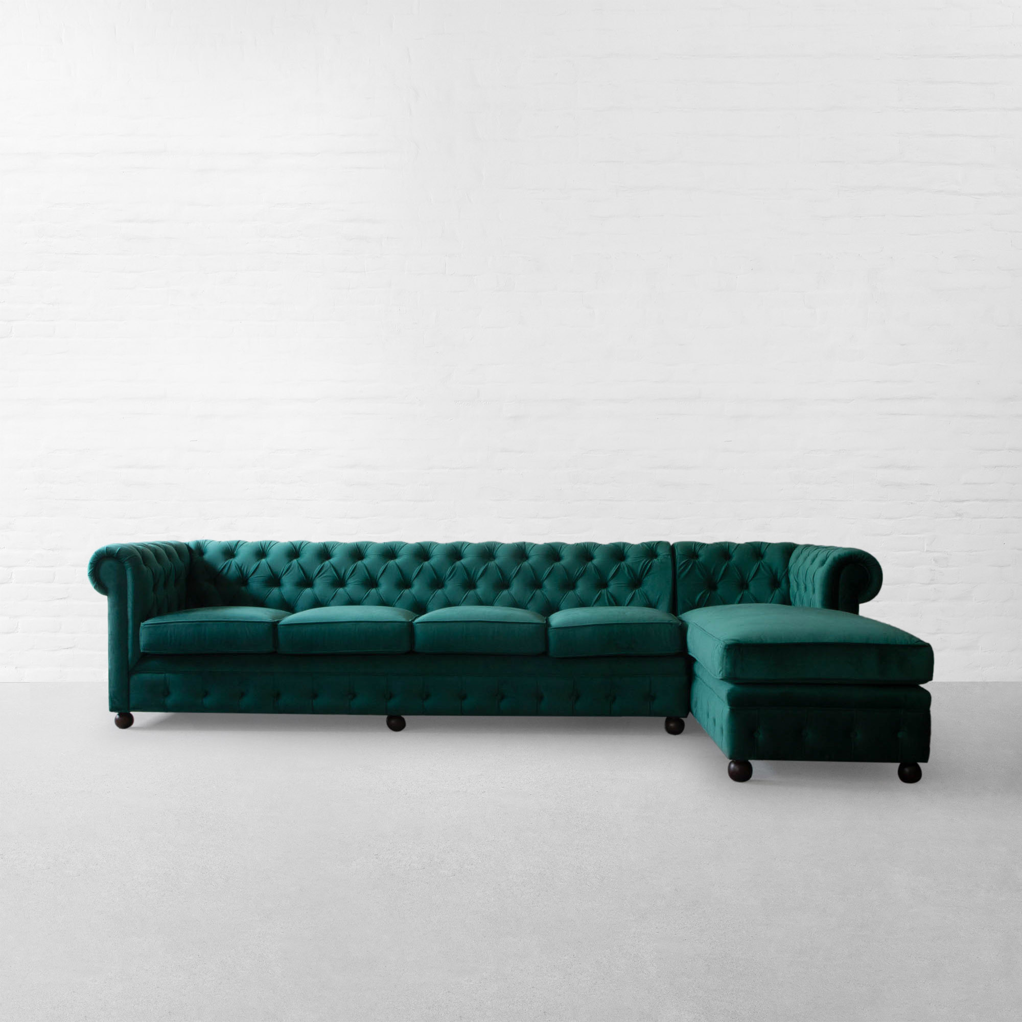 The Chesterfield conjures visions of English libraries or men’s clubs, with its tufted back and facade and high rolled arms. This classic Chesterfield in our fabric brings in enormous charm to your living room and is a handcrafted masterpiece by one of our 4th Generation sofa artisans. All sectional components are also available in preset configurations and individually, allowing you to customise the configuration of your choice.