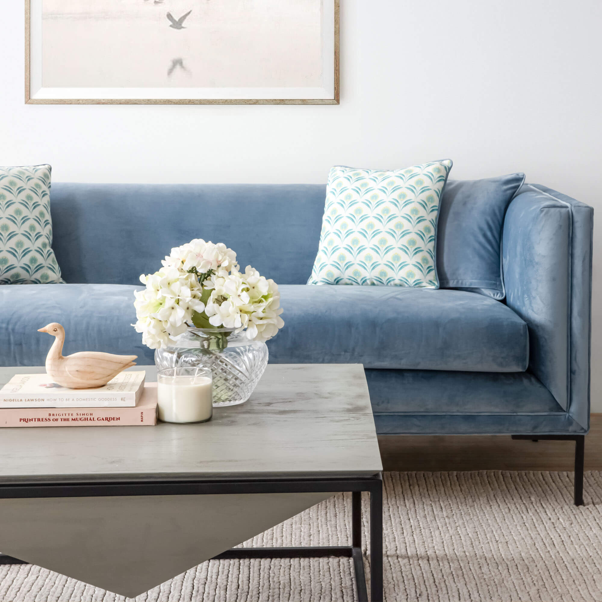 Bring a punch of poise and panache to your living spaces with the "Magpies of Ireland" fabric. These turquoise-tinted gems not only uplift your home but are also an ode to the graceful nature of these enchanting birds. Inspired by the cobalt and white colour found in Magpies’ plumage, this collection captures their vibrant and captivating beauty. Just like the sociable songbird gracing this fabric, the vivid and intricate hand painted designs are sure to bring out an animated charisma to your living space and fill your evenings with never ending chatter. Let the magpie's elegance take flight as you surround yourself with upholstery that tells a story of beauty and grace.