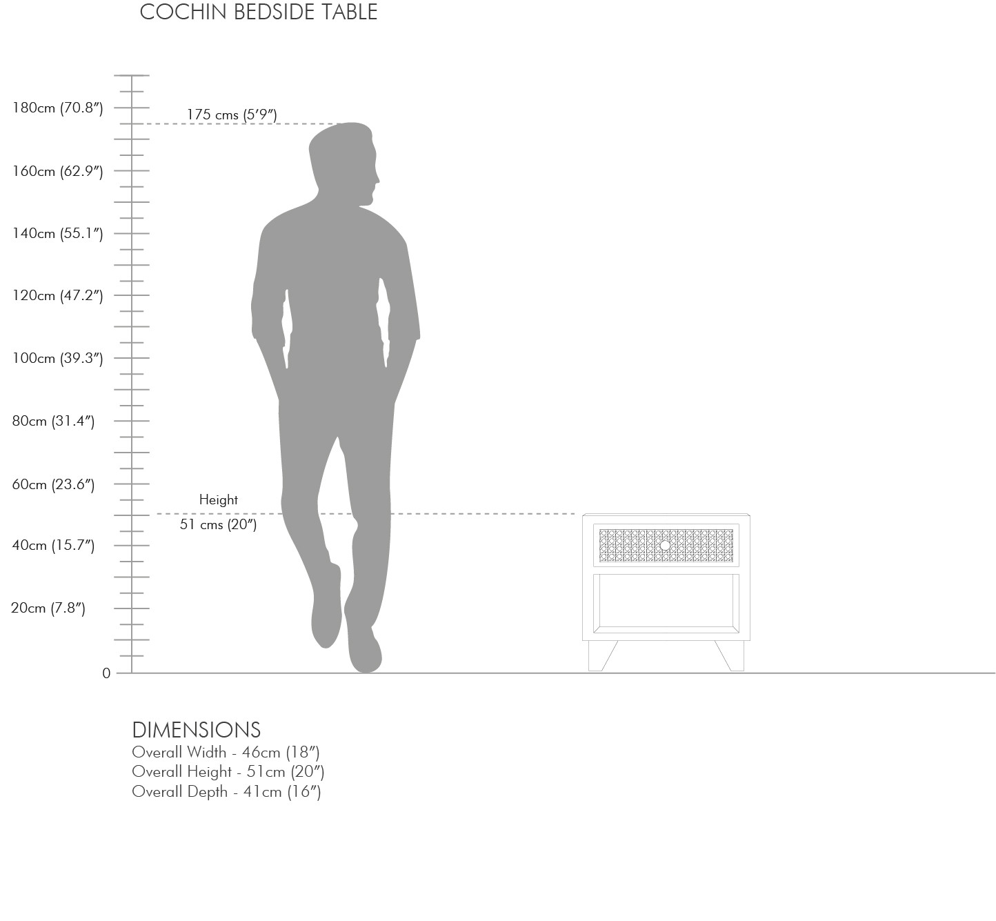Cochin Bedside Table is a classic versatile style with a clean silhouette adorned with cane rattan work that adds that old world charm to your living space. The compact size table may be used in multiple ways: as a quaint dining setup, as sides tables in living room or as a center-table in hallways and verandas. Allow Cochin Bedside Table to stage flowers vases, antiques, photo memories and more.