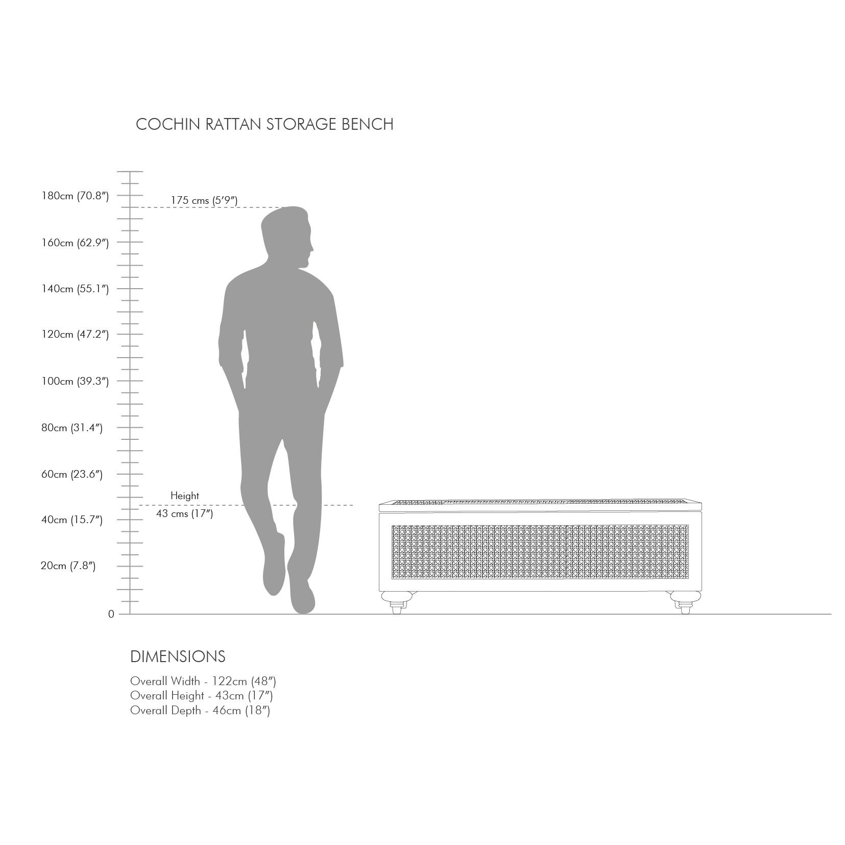 122cm W x 46cm D x 43cm H (48"Width x 18"Depth x 17"Height)