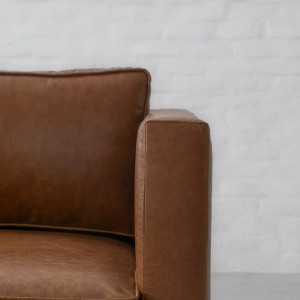 Top-grain leather is aniline dyed with earthy Chestnut hue that will lighten and soften with use and time, and will develop a rich patina. Our antiqued leather is finished in an intensive process that lends it a soft, brushed appearance with an aged, classic look. The finishing process of these selected hides brings out its natural highs and lows in color and texture. The leather becomes even softer and more supple with age and wear. There could be variations in color and texture of various parts from hide to hide, which makes each piece unique.