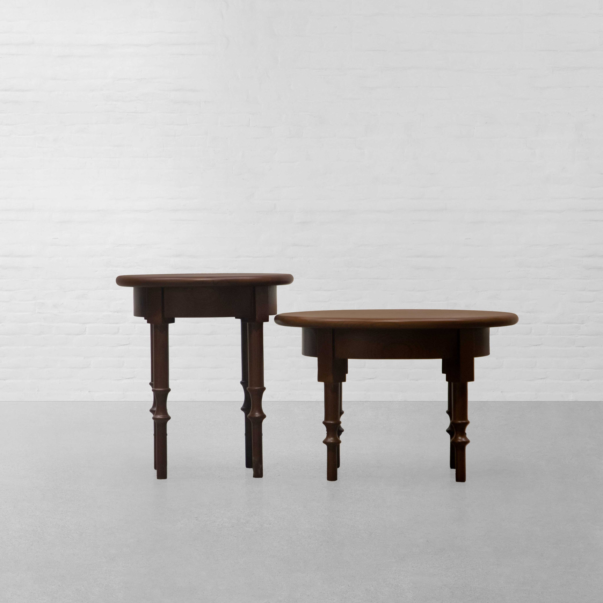 The Coonoor Nesting Side Tables bring a gentle, grounded presence to a space, shaped by thoughtful proportions and softly turned wooden legs. The circular tops are finished smooth, allowing the natural wood grain to remain visible and warm, adding character without ornamentation. The detailing along the legs introduces a quiet sense of movement, giving the design depth while keeping the overall form relaxed and refined. Designed to nest together or stand alone, the tables offer an easy versatility, layered neatly when space calls for restraint, or placed apart to anchor a seating corner, bedside, or lounge setting. Styled with everyday objects or simple accents, they blend seamlessly into the room, adding warmth and balance. Understated yet expressive, the Coonoor Nesting Side Tables feel calm, lived-in, and effortlessly timeless.