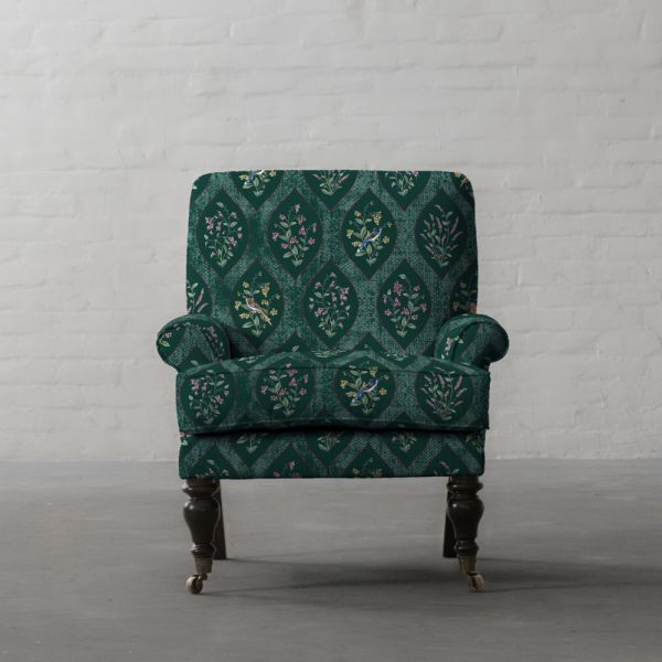 A beautifully serene scene, bathed in the deep hush of a Monsoon Night, glazing in dramatic, timeless hues. Our Starlings at Rose Garden - Monsoon is an ode to the moment when the rain has passed and the night deepens, with a rich, dark green base that captures the saturated, velvety foliage of a garden after a downpour. It is when the flaps of a starling softly settle and the British roses gleam in muted reds and hushed pinks against the intense background, the gardens becoming quiet and resting to the sounds of nature’s tranquility. Bring a vibe that reverberates the gorgeous depth of nature and dawns on a peaceful future. Our starling in the garden upholstery collection brings with it a cool familiarity and richness that are calming and inviting, yet offer a refreshing tone.