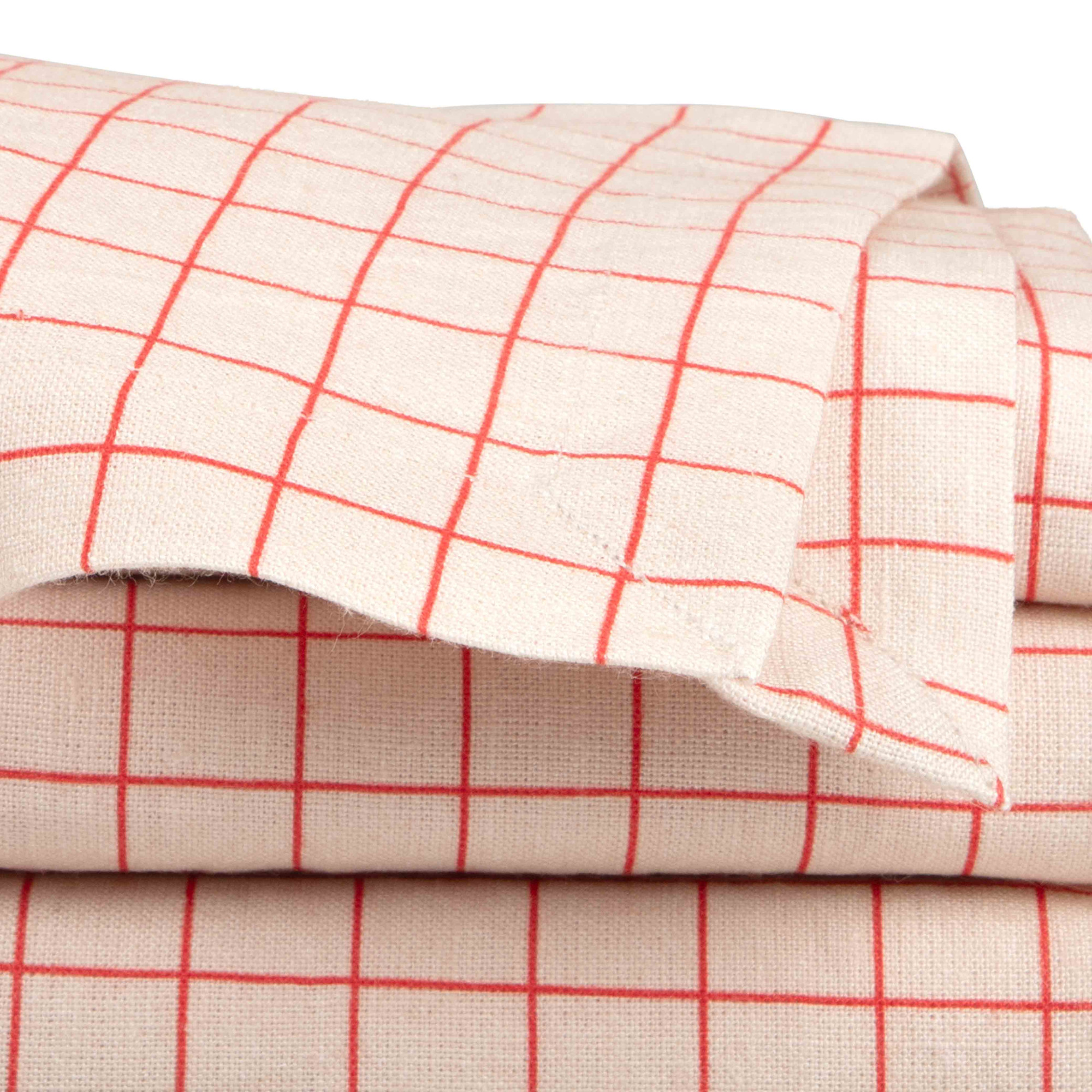 Crafted from 100% linen, the Crimson Hearthline Grid Napkin brings a gentle, homely warmth to the table. Its soft, peach-tinted base carries a crisp crimson grid—clean lines that feel both festive and effortlessly contemporary. The weave is airy yet substantial, giving every fold a beautifully relaxed drape. Whether accompanying a cosy holiday spread or adding a touch of colour to everyday meals, this napkin carries the glow of handcrafted simplicity and the subtle radiance of red against linen.