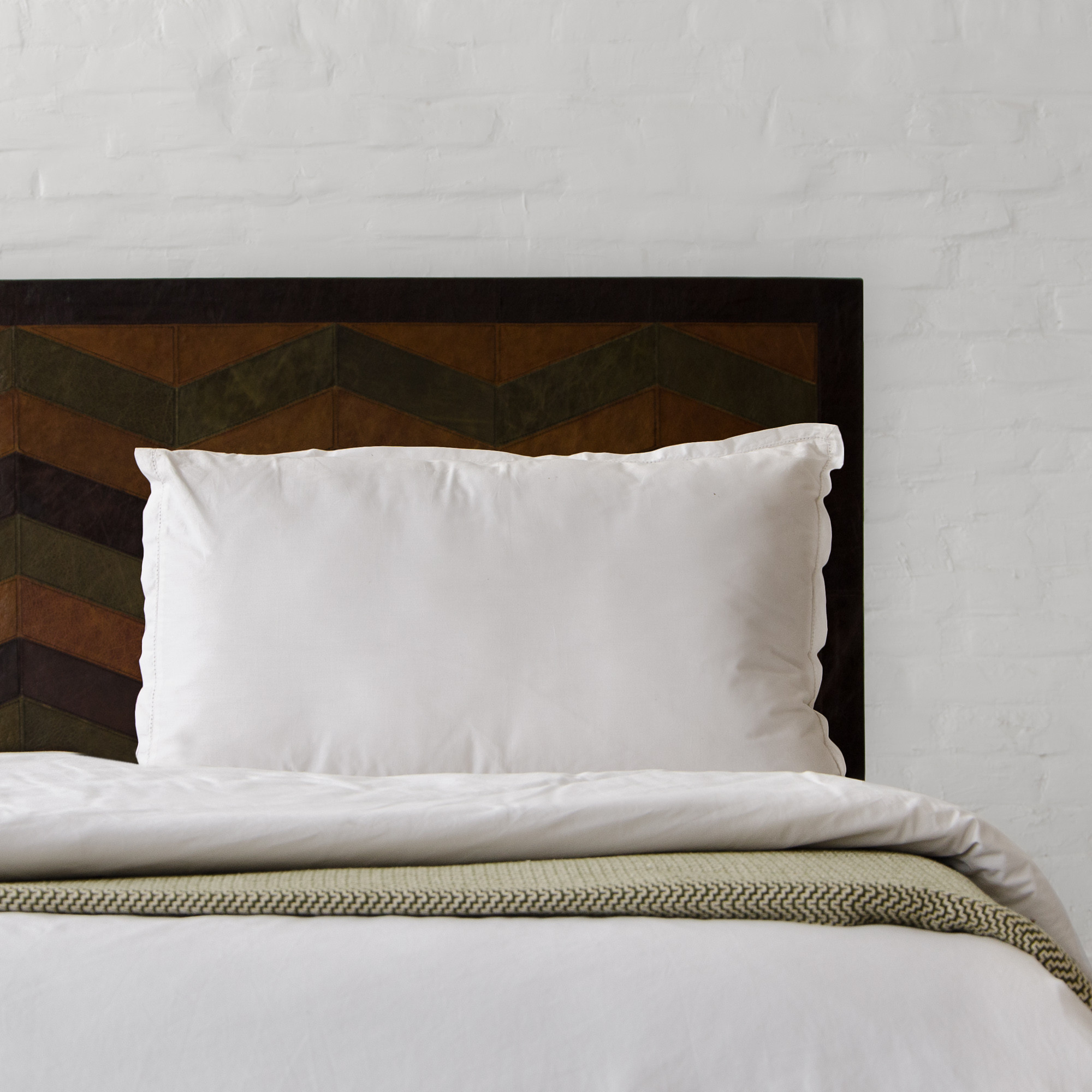 Chevron pattern has been around since ancient Greece, which is the most celebrated of all leather cladding patterns. The beautiful metered zig-zag lines in a chevron pattern, made with an unobtrusive top stitch detailing, create an endless combination of colours, finishes and textures. The beauty of a leather-clad piece lies in its graceful ageing. Each time it is used, it takes on a little more from its owner's personality. Handcrafted by our artisans, this chevron patterned headboard will add that desired texture and warmth to your bedroom. The headboard with top stitch detail resting on platform wooden bed frame or storage bed with side drawers gives this design a straight-line contemporary look with a touch of uniqueness.