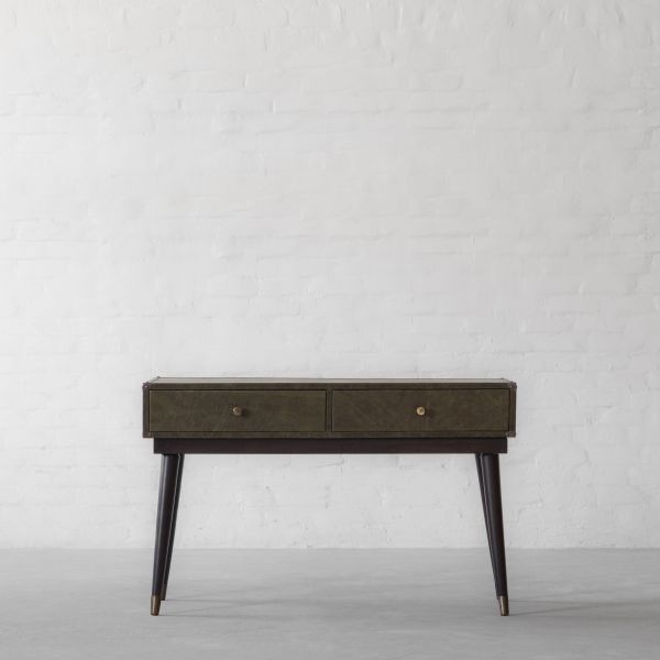 The beauty of an all over leather cladded piece along with the functionality of a storage table is power packed in our Edward Leather Clad Console Table. With simple, subtly tapered legs and a long, ample frame, this design resembles the cabinets of French aristocratic mansions, where they were used as decorative furniture pieces. But we have redesigned this classic design for home, increasing drawer space without sacrificing style. Use this design to showcase your collectibles or adorn it with lampshades on both sides or simply use it to store your daily fundamentals.