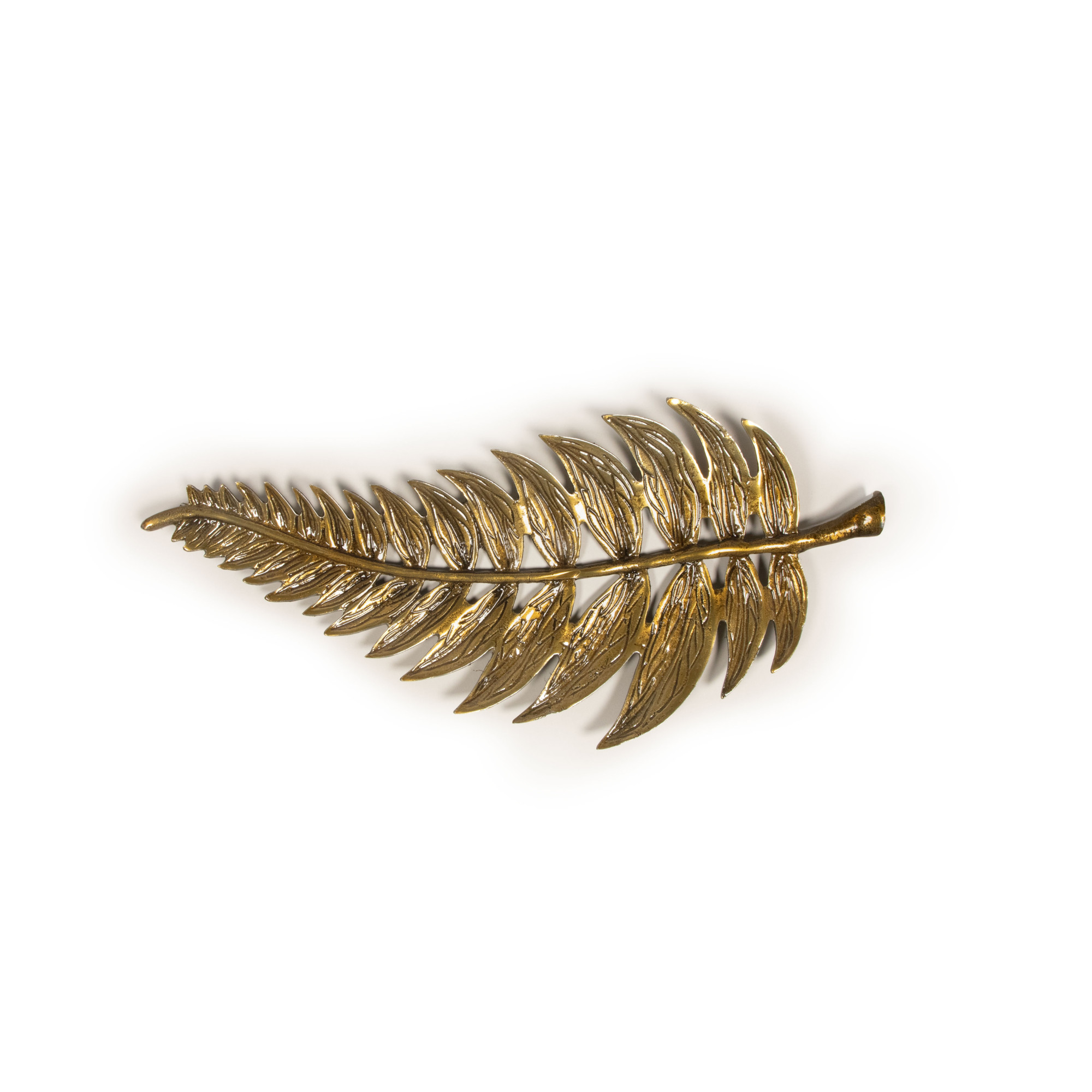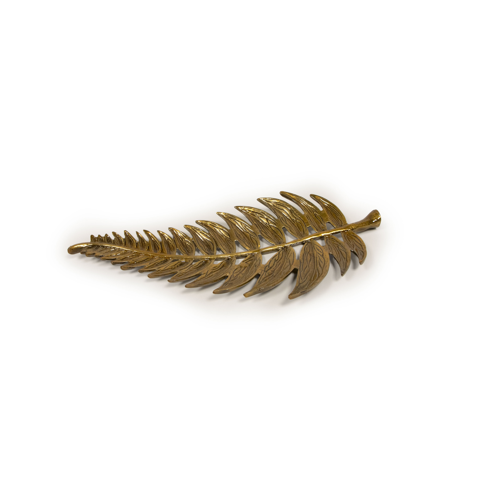 Inspired by the delicate geometry of fern leaves, our Ferra Tray transforms a natural silhouette into a statement accent. Crafted in cast aluminium and finished in a warm antique brass tone, it captures the gentle rhythm of nature with a refined, metallic sheen. Its sculptural form with its carved details makes it as versatile as it is striking, display it as a standalone décor piece, use it to hold trinkets and keys, or place it on a console or coffee table as a touch of organic sophistication. Every curve and vein reflects thoughtful craftsmanship, bringing a sense of quiet elegance to any space