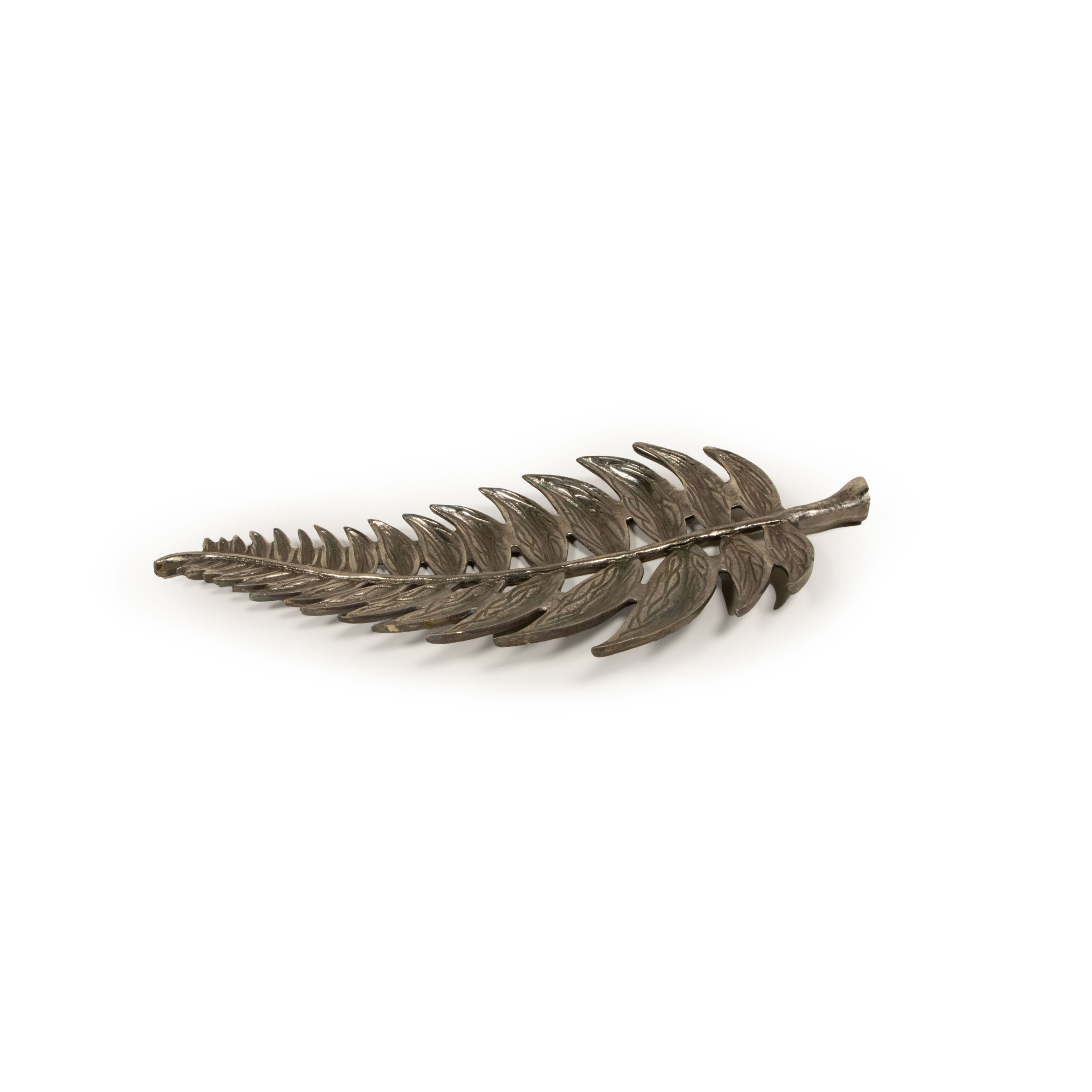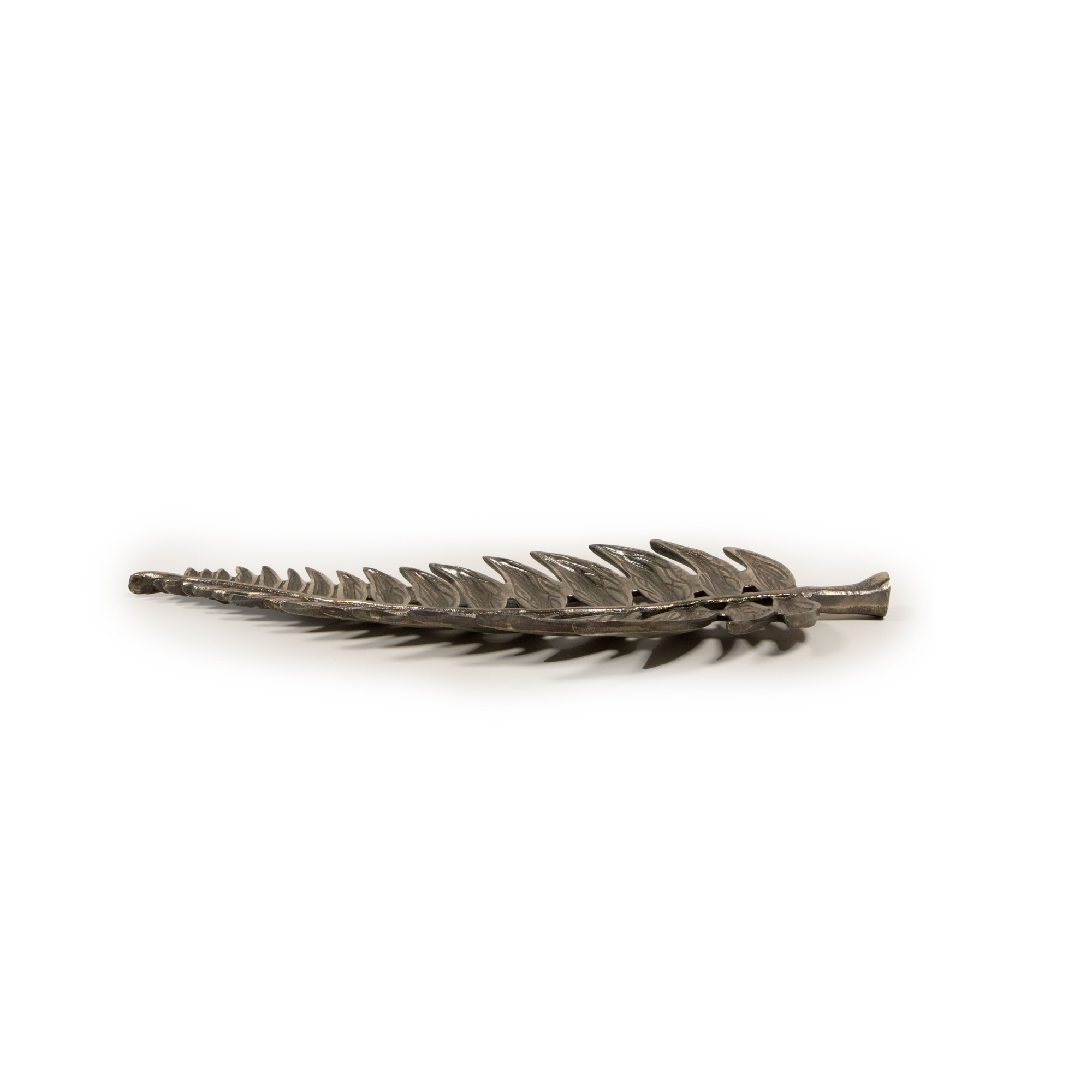 Inspired by the delicate geometry of fern leaves, the Ferra Tray transforms a natural silhouette into a statement accent. Crafted in cast aluminium and finished in a cool nickel tone, it captures the gentle rhythm of nature with a refined, metallic sheen. Its sculptural form with its carved details makes it as versatile as it is striking, display it as a standalone décor piece, use it to hold trinkets and keys, or place it on a console or coffee table as a touch of organic sophistication. Every curve and vein reflects thoughtful craftsmanship, bringing a sense of quiet elegance to any space