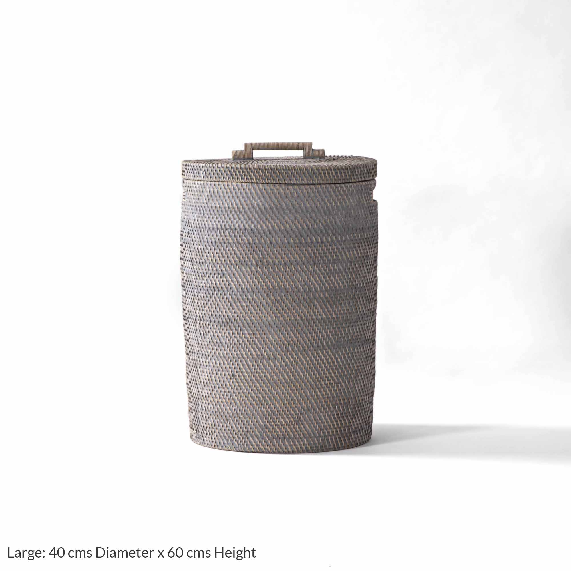 Fill your home with a coastal and earthy vibe, a reminiscence of relaxed days amidst nature. With our Hata Cylindrical Baskets in Grey Finish, you can achieve that and more. Handcrafted from natural rattan, this sturdy basket offers the perfect solution for your laundry, storing clothes, and kid’s toys, or as accent storage; for just about anywhere in your home. Also, the chic side groove handles make maneuvering them around the house easy!