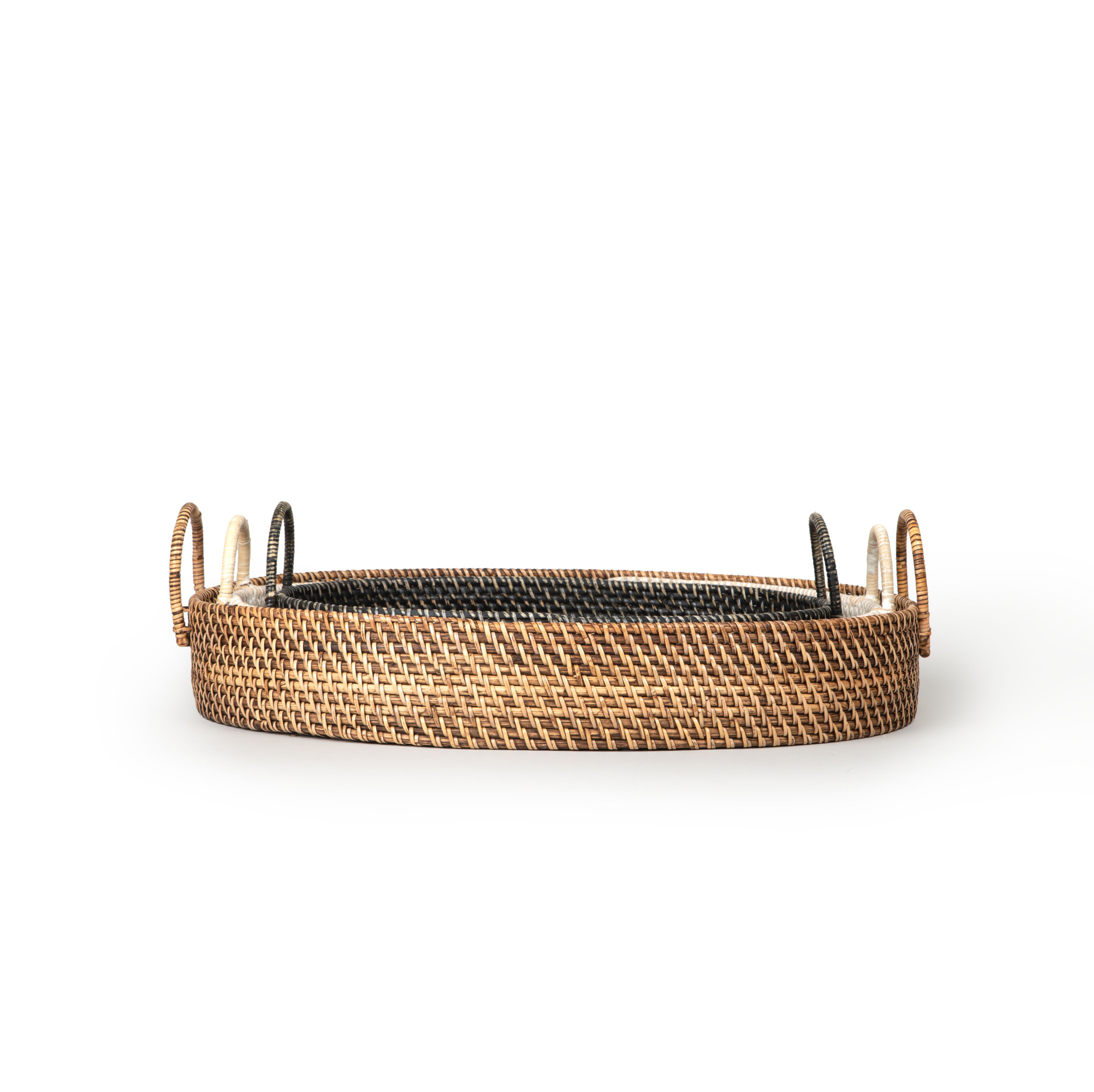 Bringing to life the basket weave design in the most loved and timeless rattan technique, our Hata Oval Tray with Handles in Natural, Gray, and Charcoal finish (Based on Size & Color Selection) makes a versatile addition to your serve ware collection. Use it to offer delectable snacks or make it the center of attraction on your coffee table or dining table, either way, this spectacular handmade creation with handles will make quite an impression on your guests. With these monochromatic earthy hues add a touch of whimsical to your home décor!