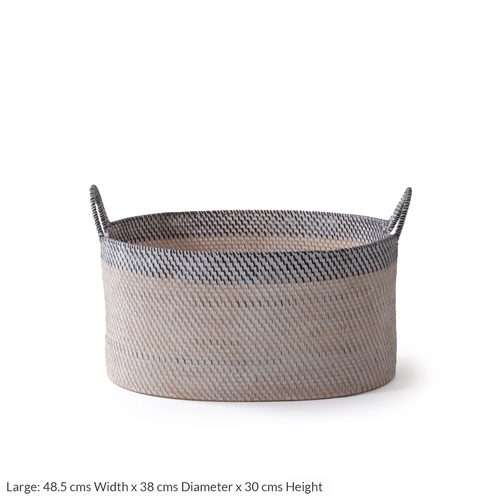 Why not transform your home into a permanent exotic ‘stay-cation’ and fill it with all things coastal and earthy, reminding you of relaxed days amidst nature? With our Hata Rattan Woven Baskets in Natural & Charcoal Finish, you can achieve that and more. Handcrafted from natural rattan, this sturdy basket offers the perfect solution for your favorite reads, and kids' toys, or as stylish storage for just about anywhere in your home while its chic side swing handles make maneuvering them around the house easy! The charcoal rims give it an extra chic style.
