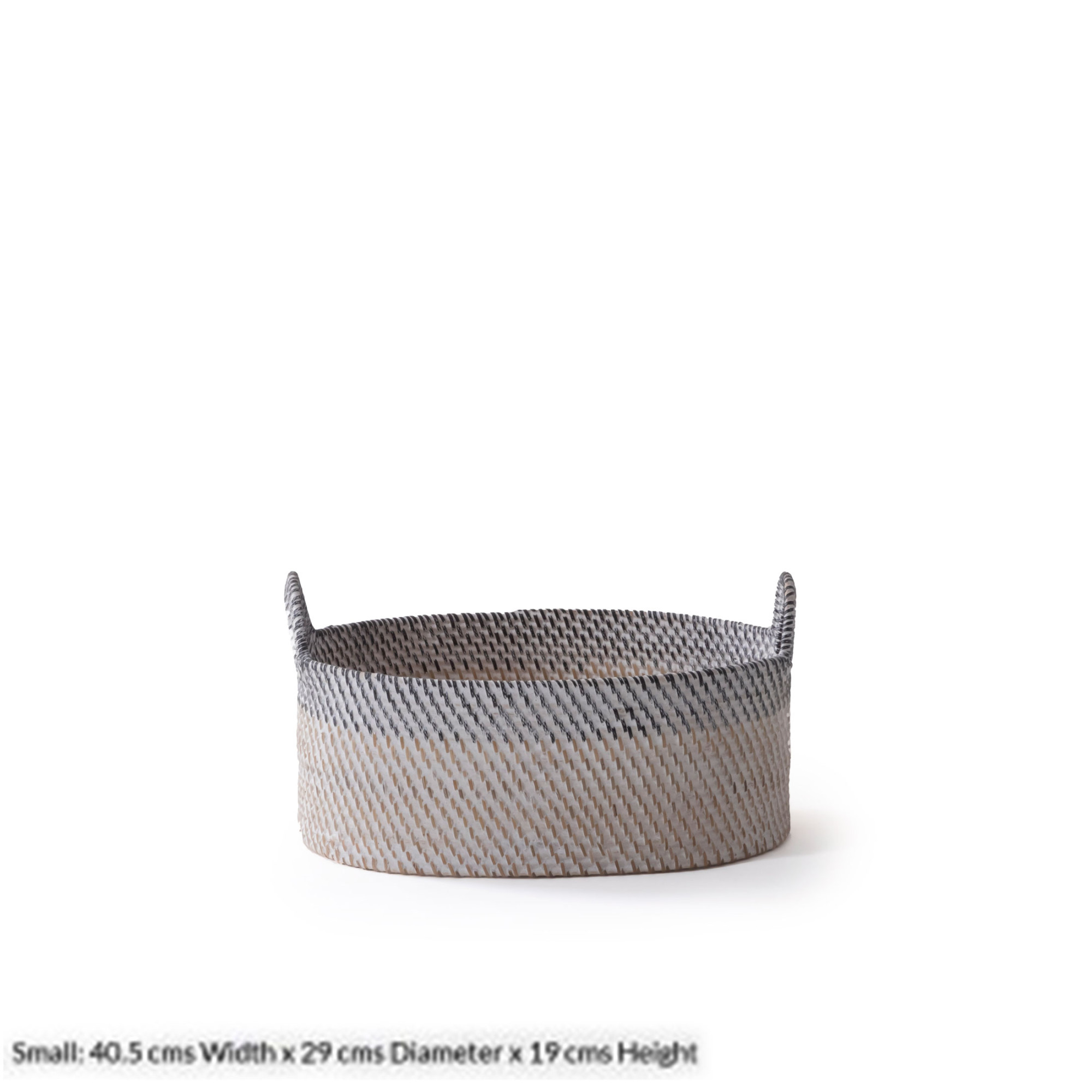 Generic Name: Hata Rattan Woven Baskets With Swing Handles-(Natural+Charcoal)
