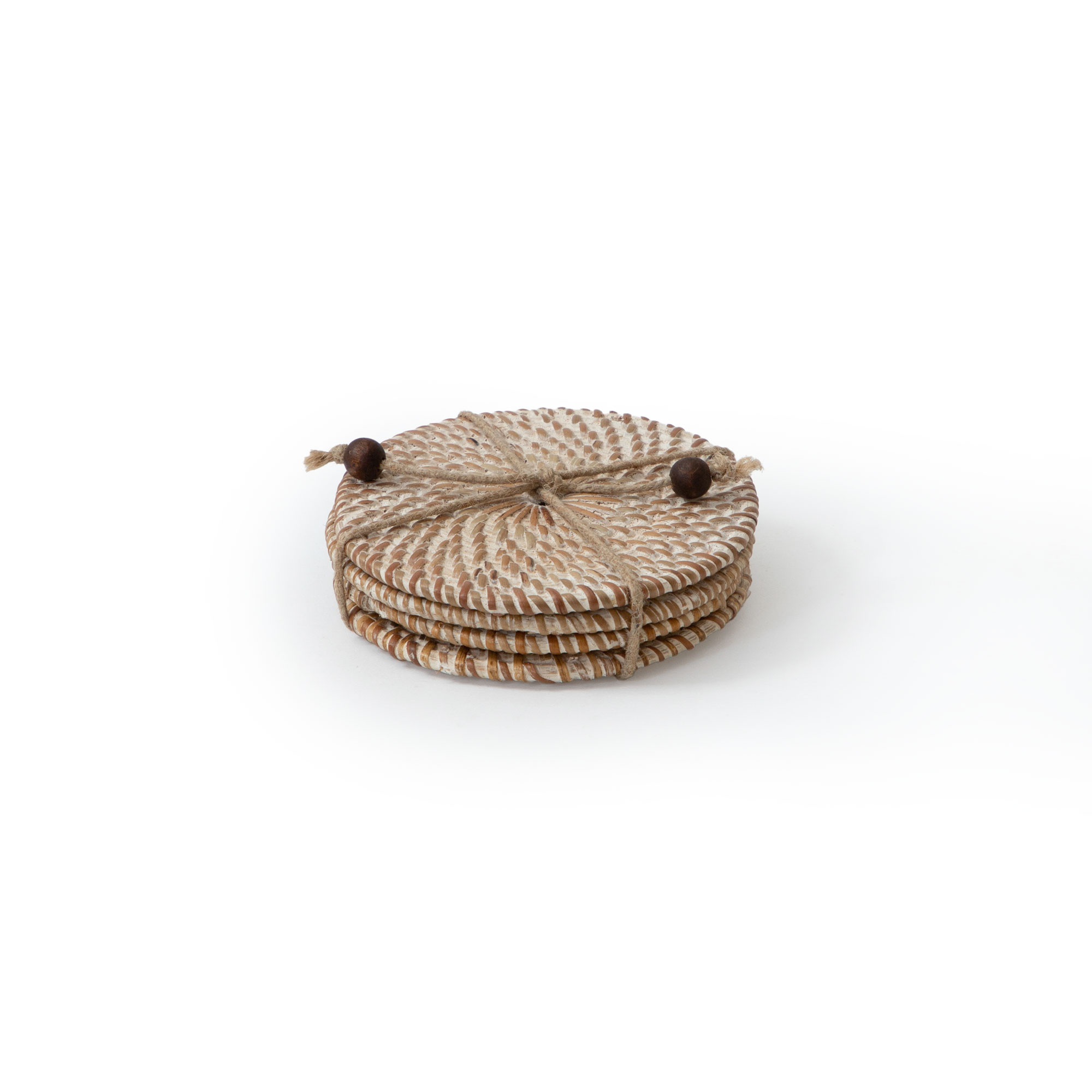 Generic Name: Hata Round Rattan Coasters - Beach Sand