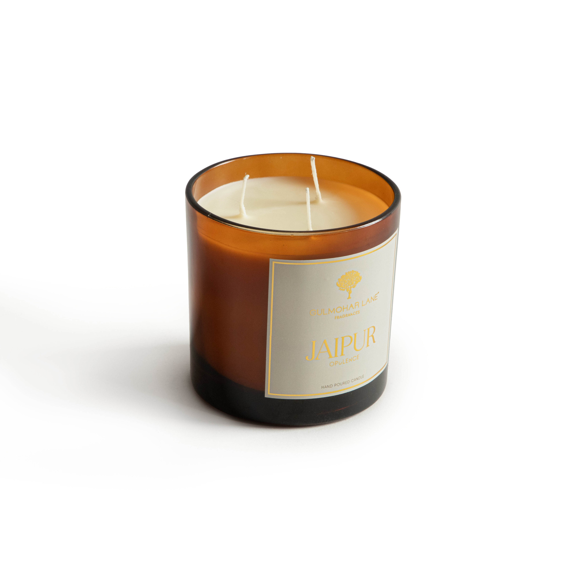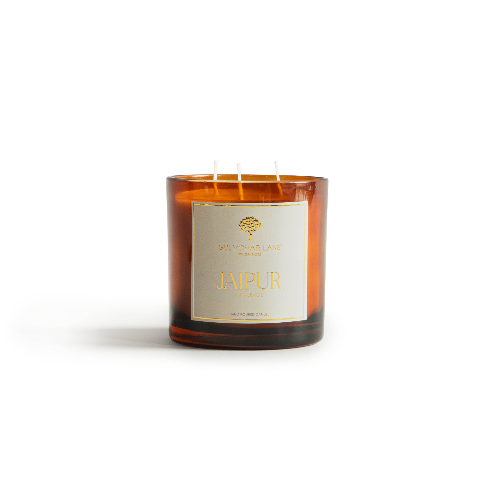 Encased in an amber glass jar with a solid wood lid, it pairs regal indulgence and warm Indian evenings. In the heart of the walled city, where palaces rise in pink sandstone and exotic Indian florals mixed with spiced notes scatter their brilliance, this fragrance is woven from India’s rich heritage. Jaipur Opulence captures the very essence of a city rich in culture, echoing the splendor of courtyards perfumed with jasmine, tuberose, and heritage blossoms. It is lush yet delicate, regal yet tender, a scent that celebrates grandeur while evoking the intimacy of whispered traditions. Perfect for styling on coffee tables, consoles, or bedside corners, it brings a touch of royal charm to contemporary homes.