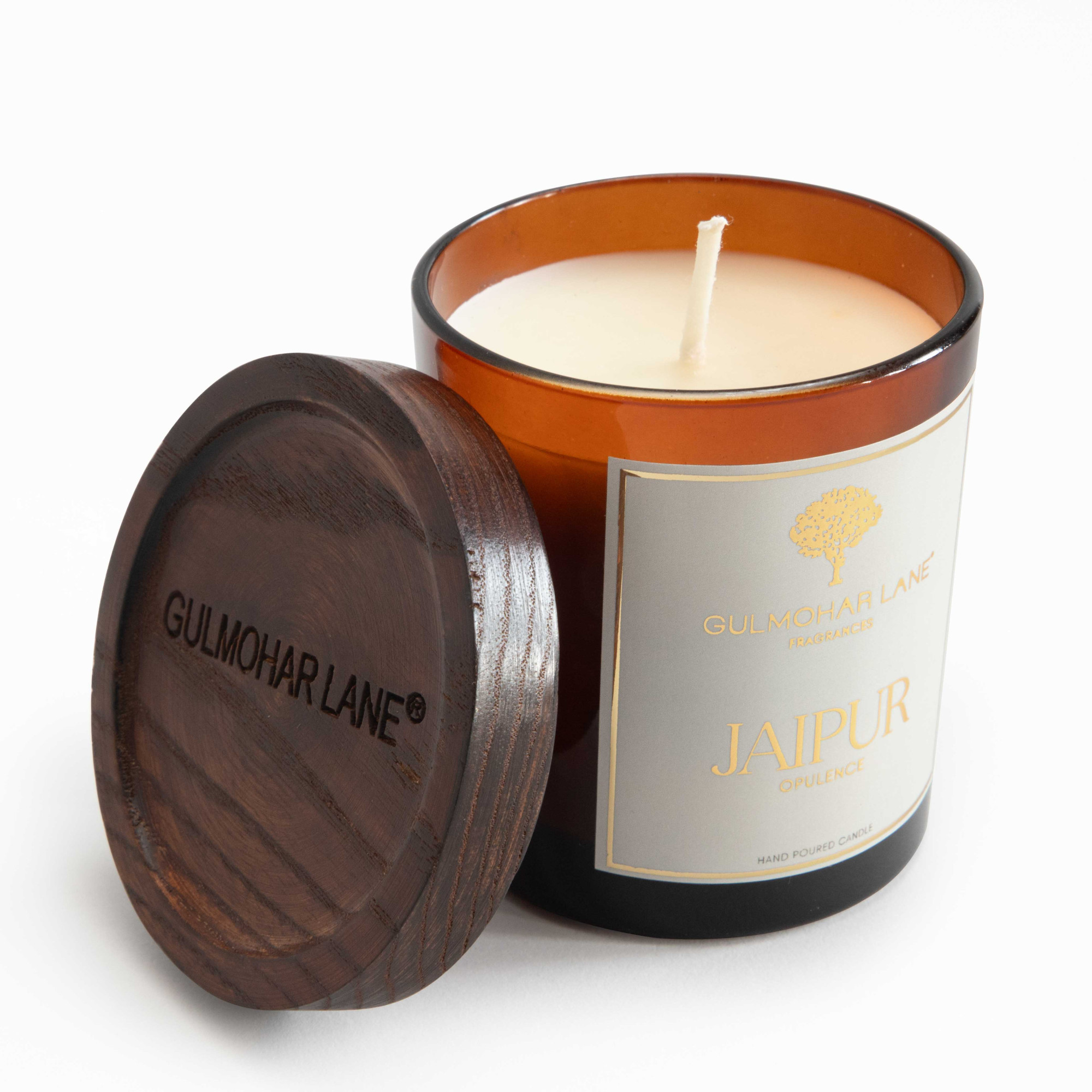 Encased in an amber glass jar with a solid wood lid, it pairs regal indulgence and warm Indian evenings. In the heart of the walled city, where palaces rise in pink sandstone and exotic Indian florals mixed with spiced notes scatter their brilliance, this fragrance is woven from India’s rich heritage. Jaipur Opulence captures the very essence of a city rich in culture, echoing the splendor of courtyards perfumed with jasmine, tuberose, and heritage blossoms. It is lush yet delicate, regal yet tender, a scent that celebrates grandeur while evoking the intimacy of whispered traditions. Perfect for styling on coffee tables, consoles, or bedside corners, it brings a touch of royal charm to contemporary homes.