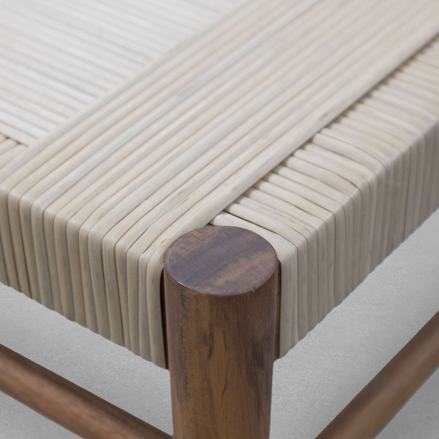 Our Kantō Woven Bench aims to cultivate a sense of presence, clarity, and inner peace that comes naturally with crafting designs by hand. Handwoven cane not only carries the authenticity of the craft but also amplifies our compassion towards its maker and celebrates the skills that have been passed down through generations. With its minimal solid hardwood form the cane craft shines yet remains understated to allow it to blend into a variety of decor styles. The Earthy tones and minimal structure seamlessly blends function and aesthetics, offering versatile seating that complements a range of Interior looks. Create a soothing look with Kantō Woven Bench in your personal or work spaces.