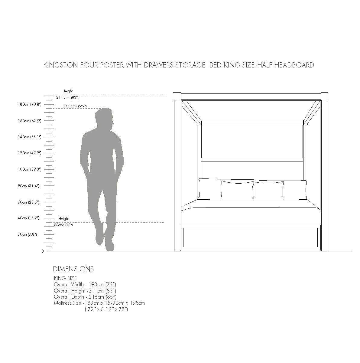 Overall King: 193cm W x 216cm D x 211cm H (76" W x 85" D x 83" H)