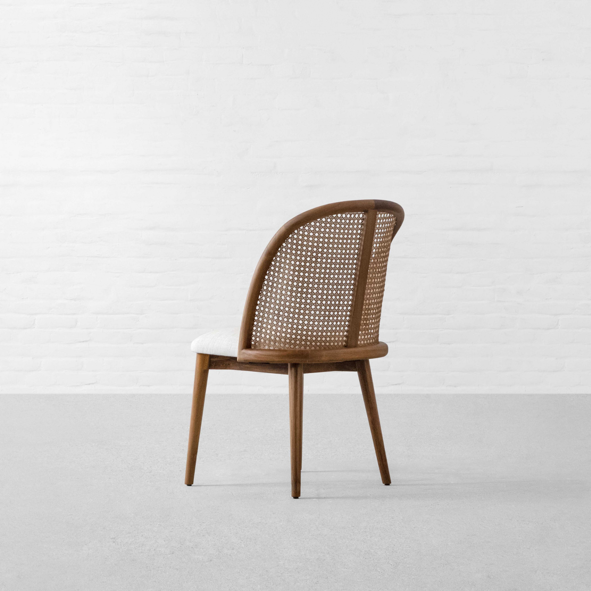Shown here is the Kiso Rattan Dining Chair in Gir Ivory Fabric & Natural Teak Finish.