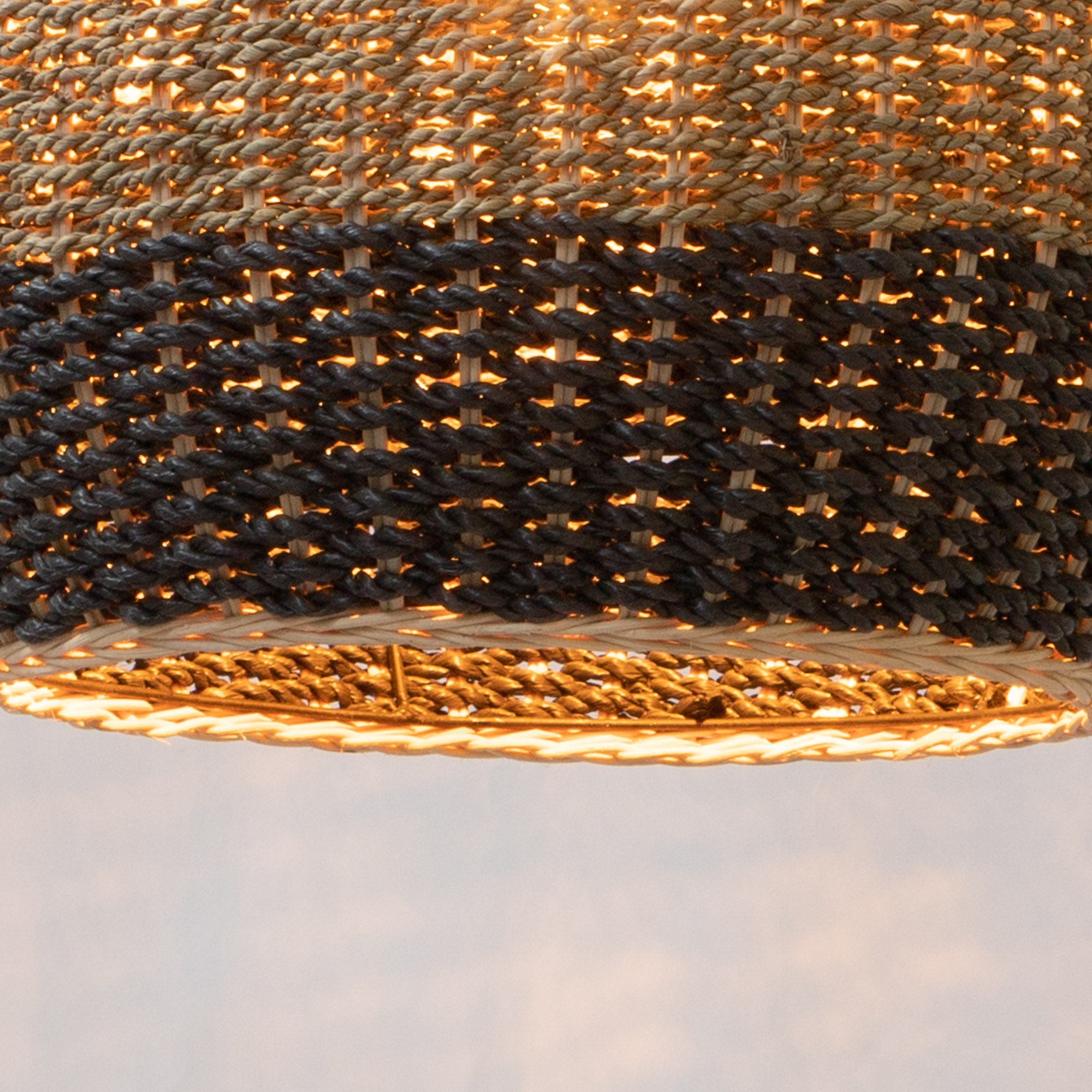 Right from the hidden nooks of South East Asia, our Natural Black Lake Grass Bell Pendant Lamp will add a touch of rustic to your spaces. This hand-woven oversized shade makes for a massive statement and is a classic staple for many Balinese bars and cafes; thus adding character and warmth to any interior space. Let your thoughts take you to your dreamy world, under this charming handmade ensemble!