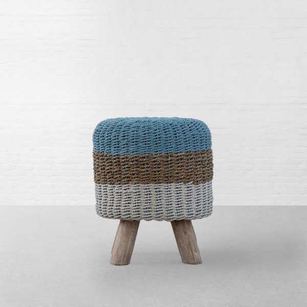 Generic Name: Langkawi Handwoven Ottoman - Aqua Natural White