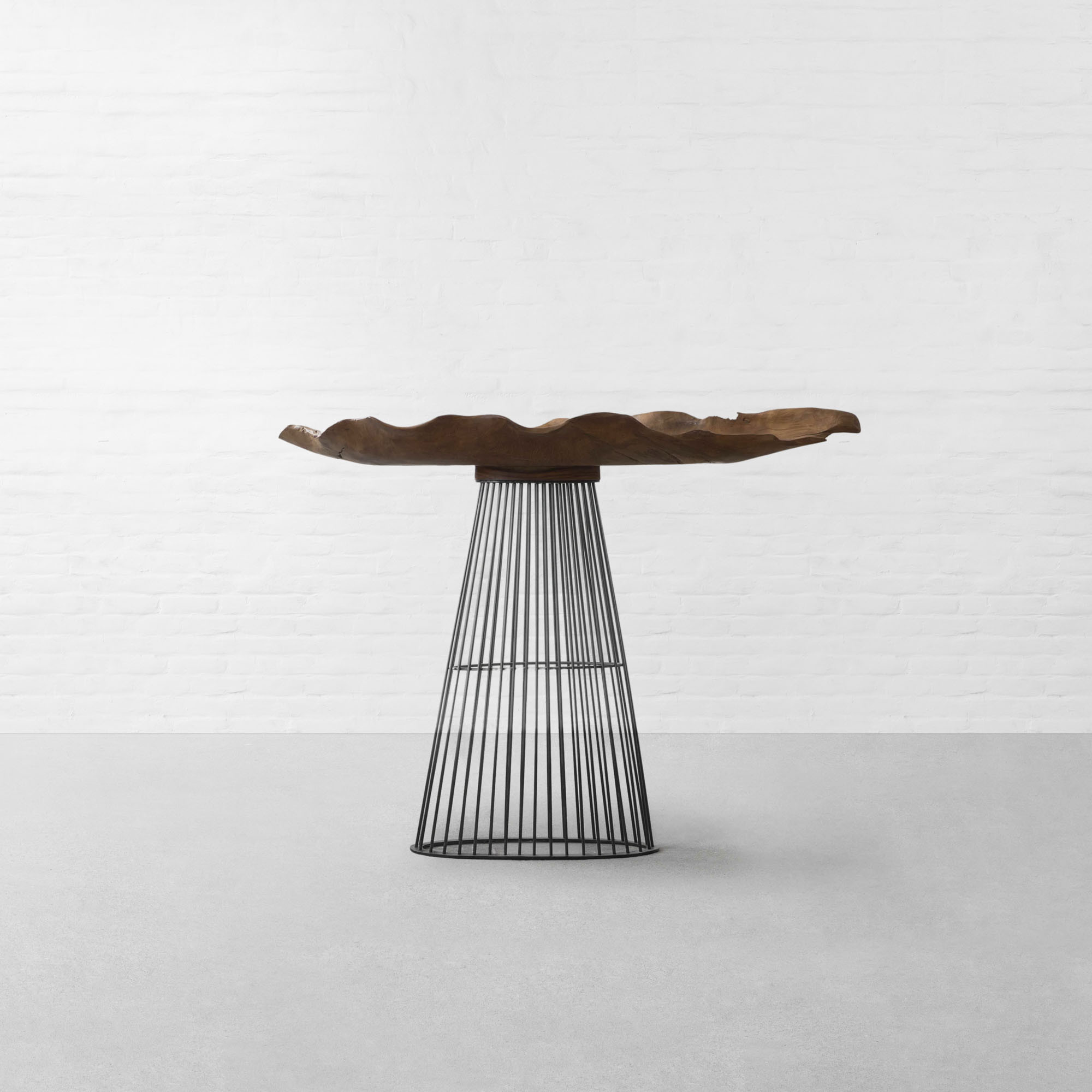 With an exotic tropical leaf brought to life in impeccable wooden craftsmanship and enhanced by the opulent metal cage base, you can rest assured that your guests will be left spellbound. Our Leaflet Wooden Console Table is crafted to complement any setting with a unique expression and sumptuous style. Whether it is your living room, bedroom, or entryway; layout this elegant design to adorn your home with some natural beauty and undeniable flair. Supported by the characteristic base stand and rustic teak wood top, making it is an exquisite contemporary piece. It’s the sophisticated interplay of mixed materials that combine supreme craftsmanship with industrial influences.