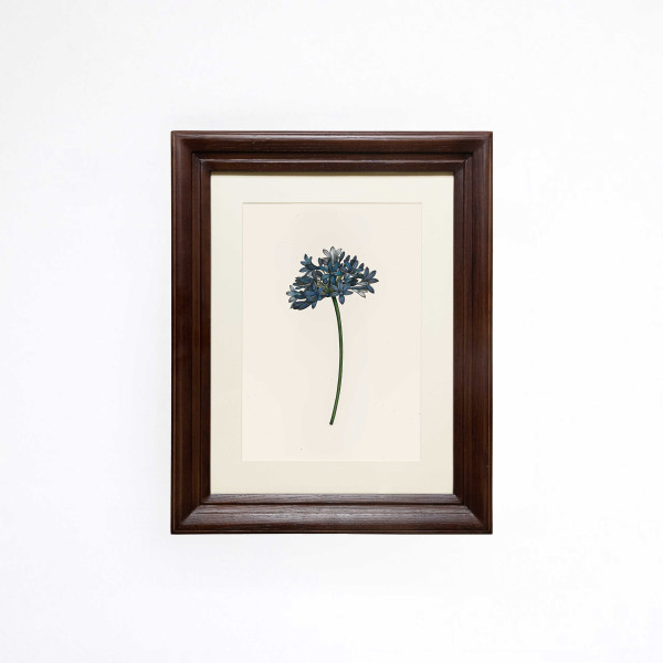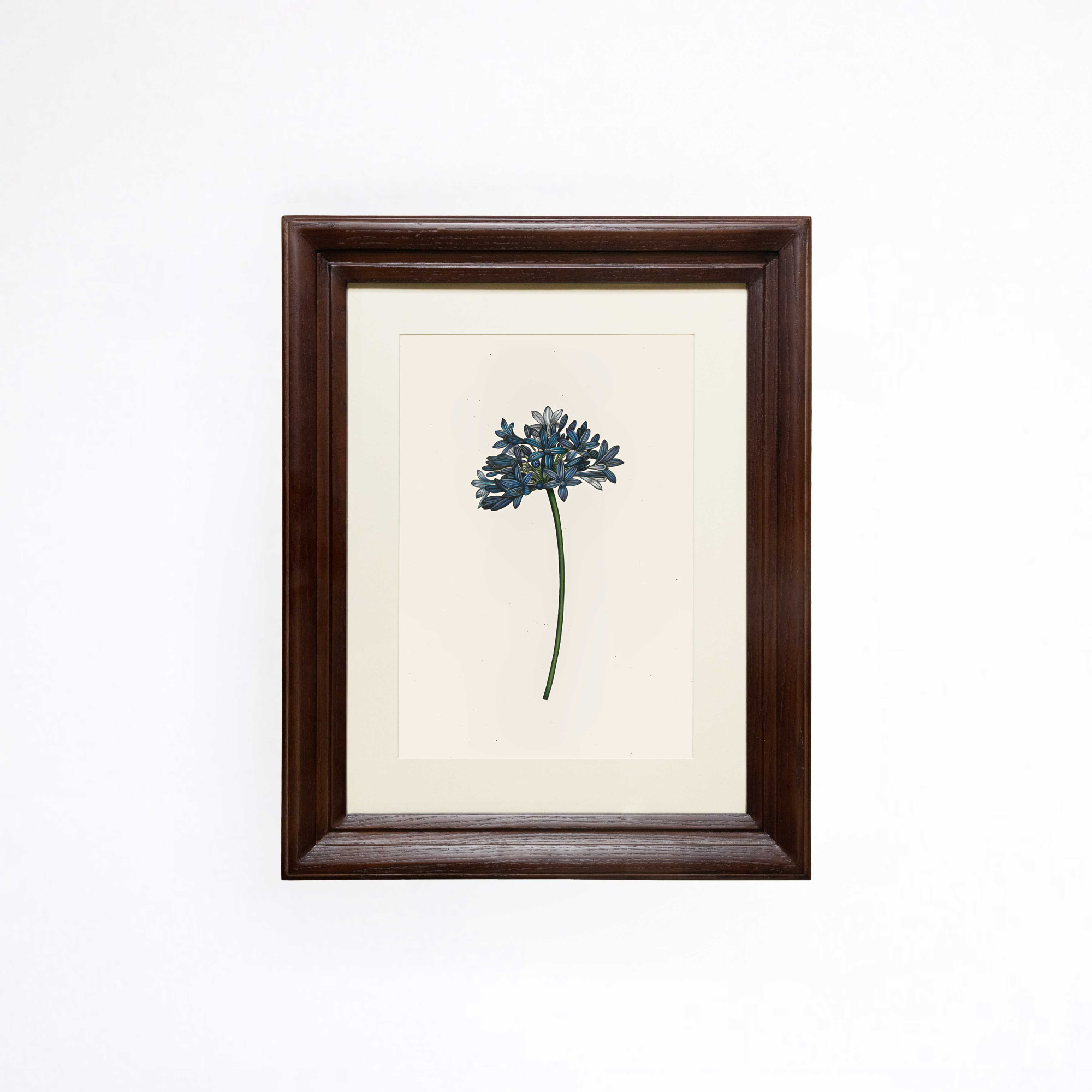 A striking floral piece, our Lily of the Nile Printed Artwork captures the bold, rounded beauty of an African Lily in deep blue tones. Originally hand-painted, the artwork focuses on a dense cluster of trumpet-shaped flowers, each marked with delicate stripes and a bright, star-like symmetry. The design is centered by the contrast between the rich blue petals and a single, tall green stem that curves upward. This artwork is printed on a thick, antique-style sheet, keeping the natural texture and feel of the original painting. Every fine detail, from the small stamens to the lines on the petals, is captured with clean precision. Finished in a classic wooden frame, the piece has the look and feel of a vintage find. It adds a nice pop of color and a relaxed, coastal vibe to a bright kitchen, a hallway, or a quiet entryway.