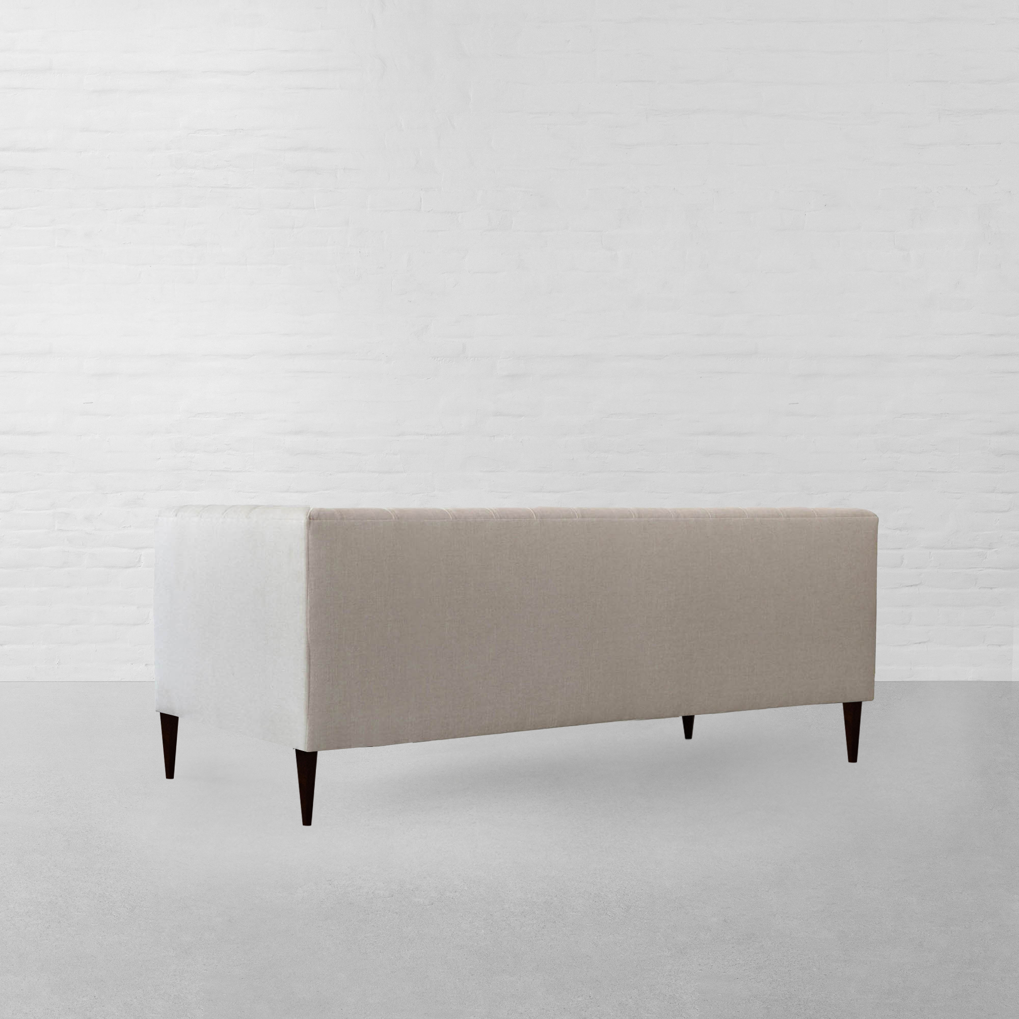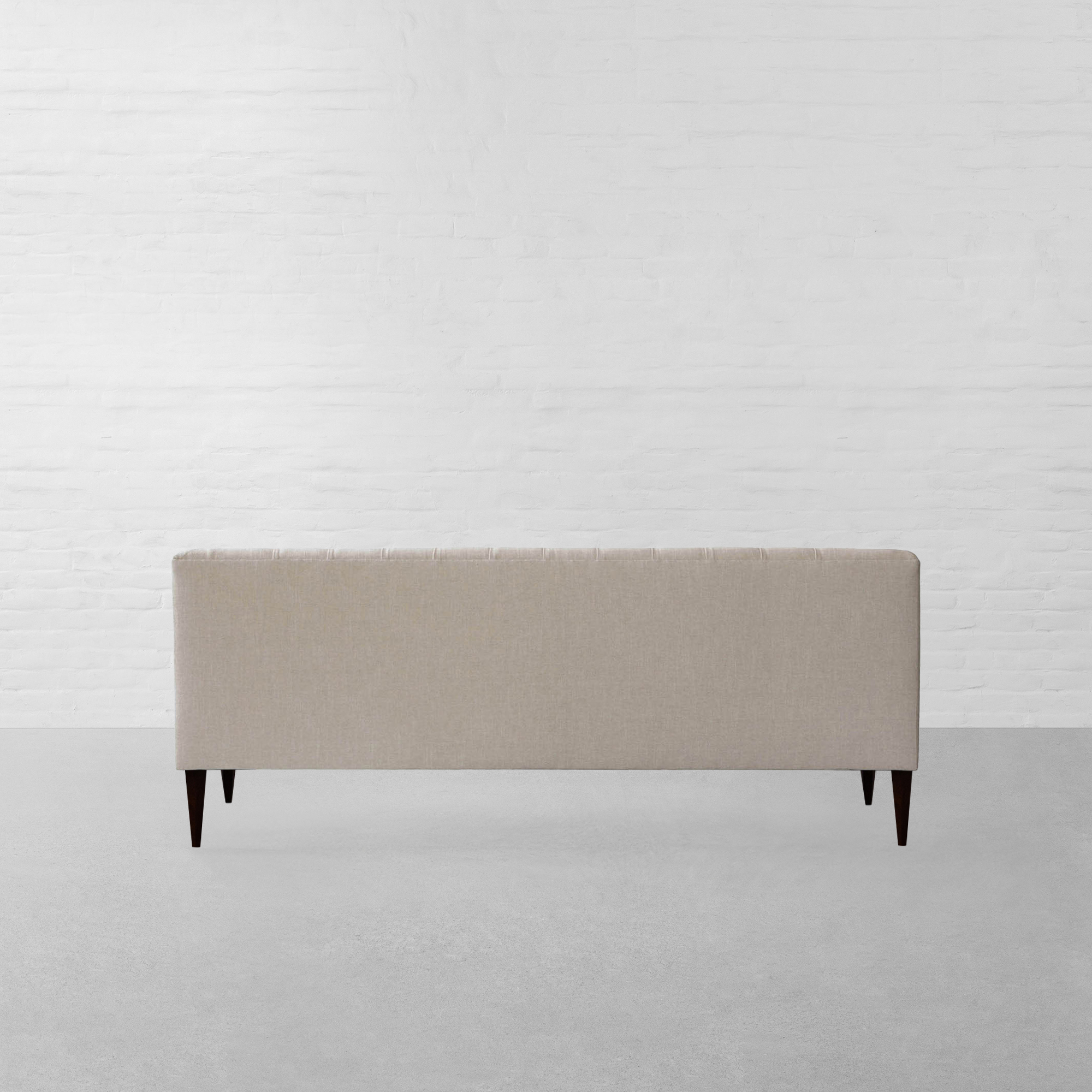 Our Lisbon Sofa is gorgeously hand-tufted and sits over sturdy solid wooden legs; a design aspiration which may remind you of the classic Chesterfield design but with a modern and industrial suggestion. Comfort clubs with a timeless design in this sophisticated piece to offer your space a contemporary-classy tinge. A clean-lined form complements this sofa with modern undertones to anchor your interiors with a new and lasting style.