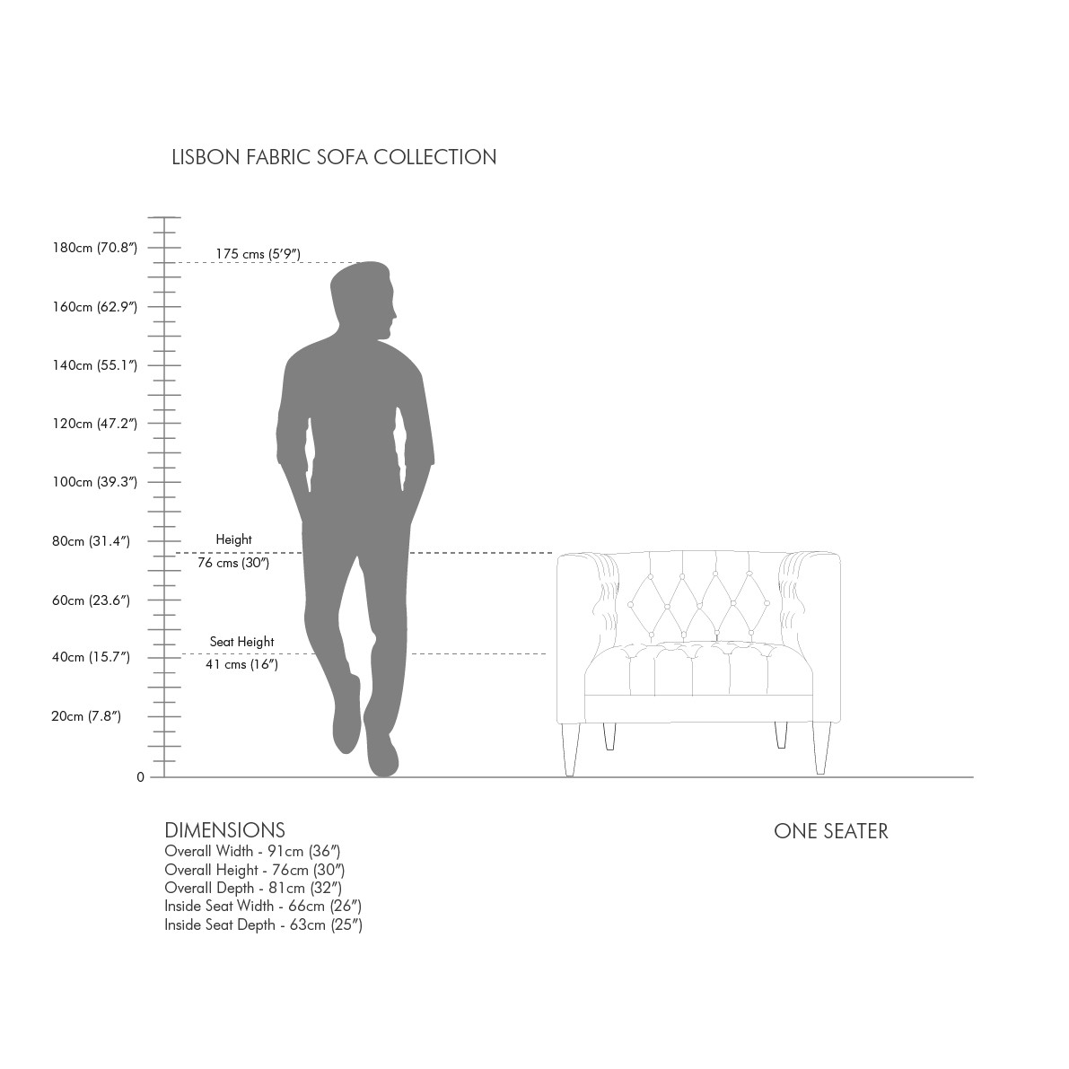 1 Seater: 091cm W x 81cm D x 76cm H (35.8" Width x 31.8" Depth x 29.9" Height)