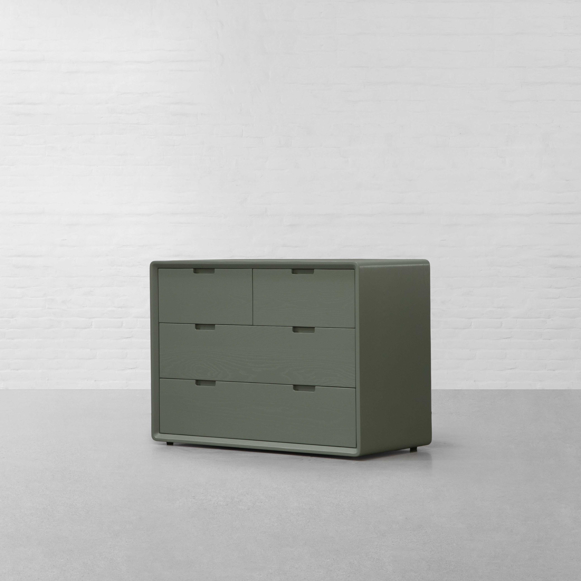 Mid-century modern design meets thoughtful craftsmanship in our Magnolia Chest of Drawers. Clean in form and practical in function, the piece is designed to adapt seamlessly across spaces, from bedrooms to living areas, offering a balanced combination of storage and surface utility. A wide tabletop provides ample room for everyday essentials, décor accents, or curated objects, while the five spacious drawers offer generous storage for clothing, linens, and personal items. The layout is intuitive and well-proportioned, making organisation effortless without adding visual clutter. The design remains simple and composed, allowing the natural warmth of the wood and the clarity of its lines to take focus. Its understated presence enables it to blend easily with a range of interior styles, from contemporary to classic. A versatile storage piece, the Magnolia Chest of Drawers brings together structure, usability, and a quiet, enduring aesthetic.