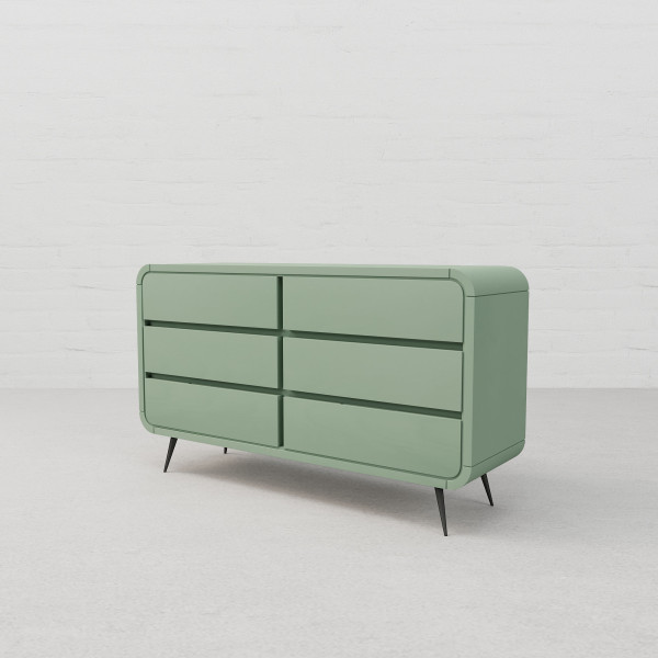 With the timeless appeal of colonial style and curves from Art Deco, our Malabar Hill Chest of Drawers adorns a ‘Minimal-Deco’ look. A look we coined. Steeped in South Bombay style décor, this 6-drawer wooden ensemble will bring a classic touch to your master suite or family room. While the drawers will offer plenty of storage for all your belongings, the tabletop will provide a perfect platform for a utility station or a display setup. Smooth rounded corners with splayed & tapered metal legs complete the look of this multi-utilitarian design. Our Malabar Hill Collection narrates a story of fine hand-craftsmanship of an era gone by yet relevant in modern times.