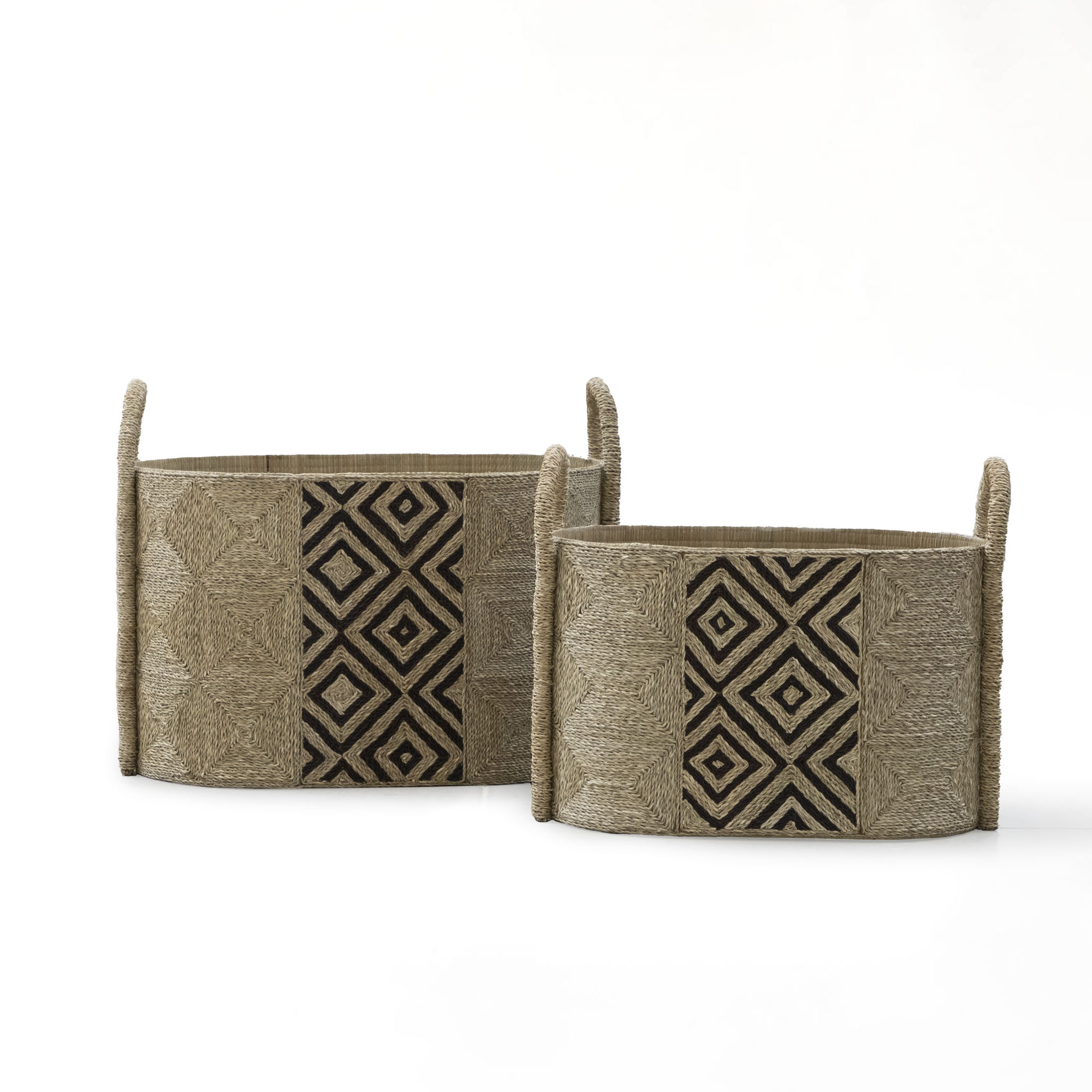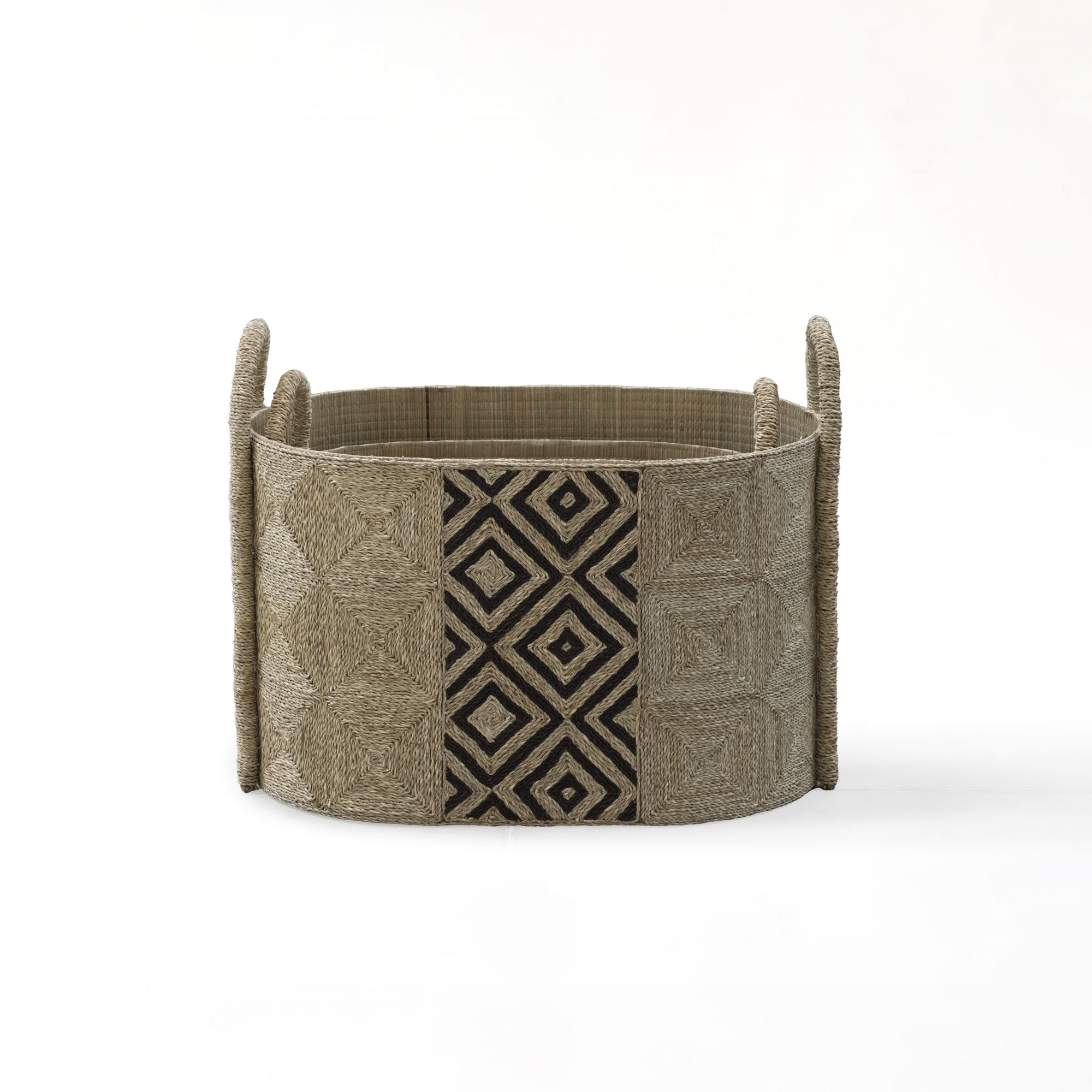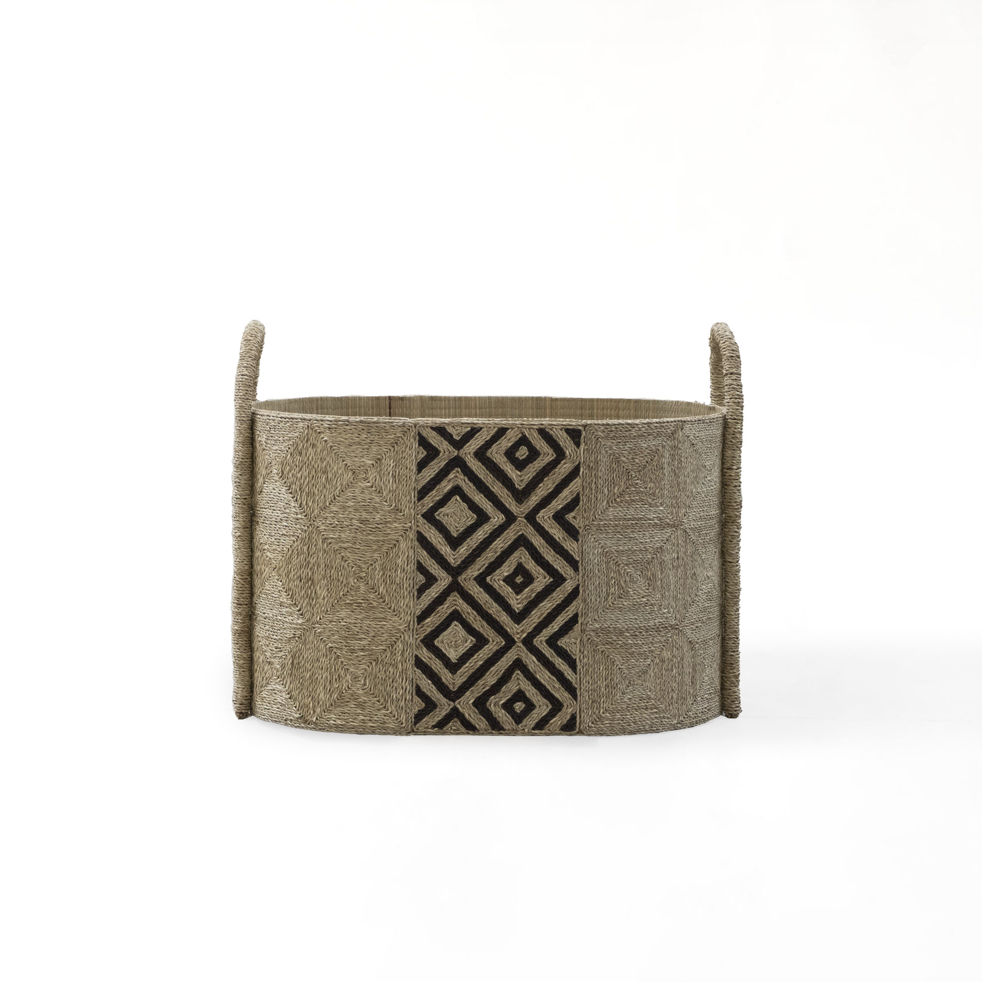 Generic Name: Malacca Round Seagrass Basket With Batik Pattern Handles-(Natural+Black)