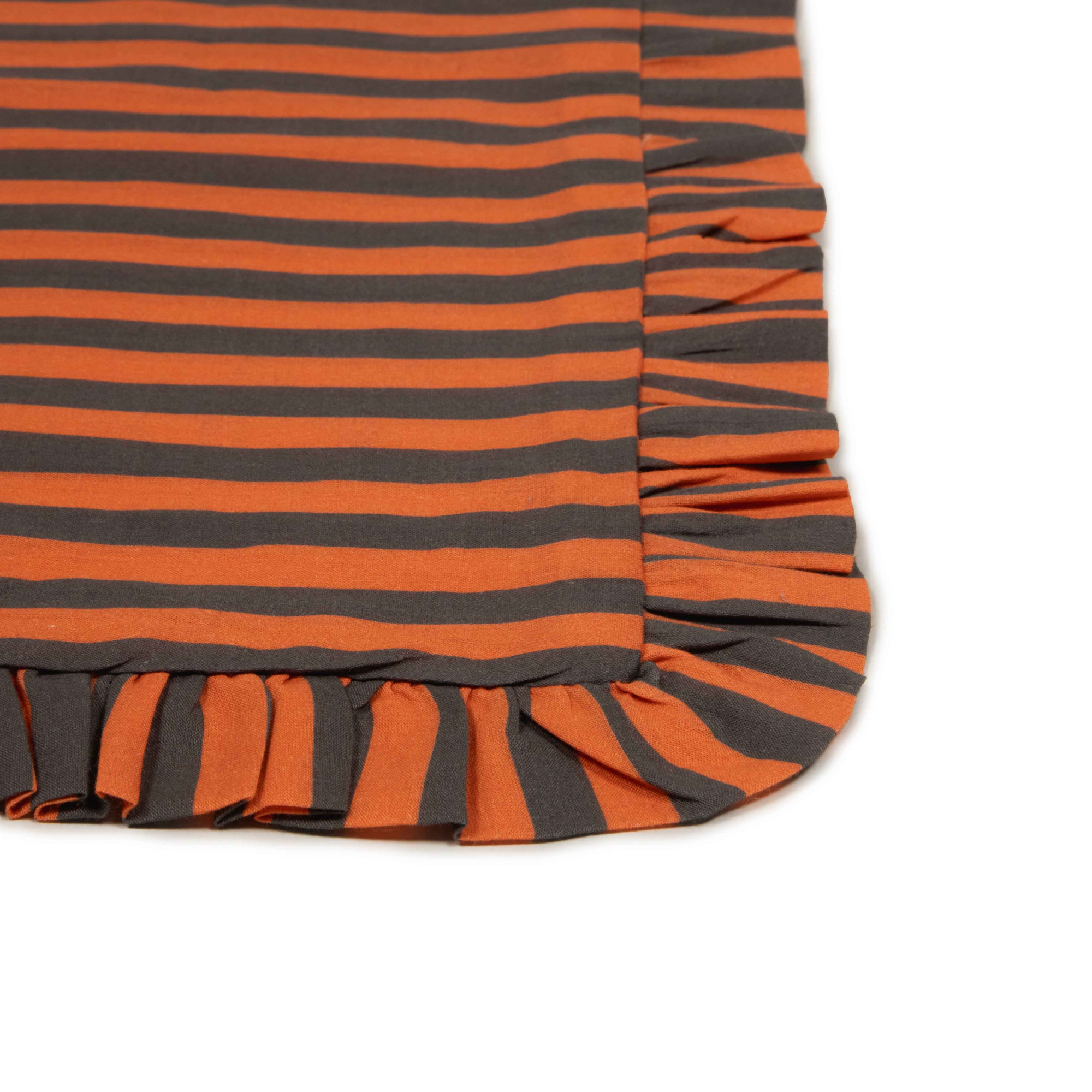 The Marigold Stripes Table Runner brings a burst of festive warmth and classic elegance to your dining space. Featuring a striking, bold composition of vibrant Burnt Orange, the iconic hue of the marigol and deep, grounding Charcoal Gray, this runner is designed to make a statement. The vertical stripes create a sense of refined rhythm, drawing the eye down the length of your table. In India, the marigold symbolizes auspiciousness and celebration, making this runner a perfect accent for festive feasts, Diwali gatherings, or special family meals. Drape it over natural wood tables for a rich, earthy contrast, or layer it over a white tablecloth for a crisp, dramatic effect. It’s an effortless way to infuse your home with the spirit of tradition and sophisticated color.