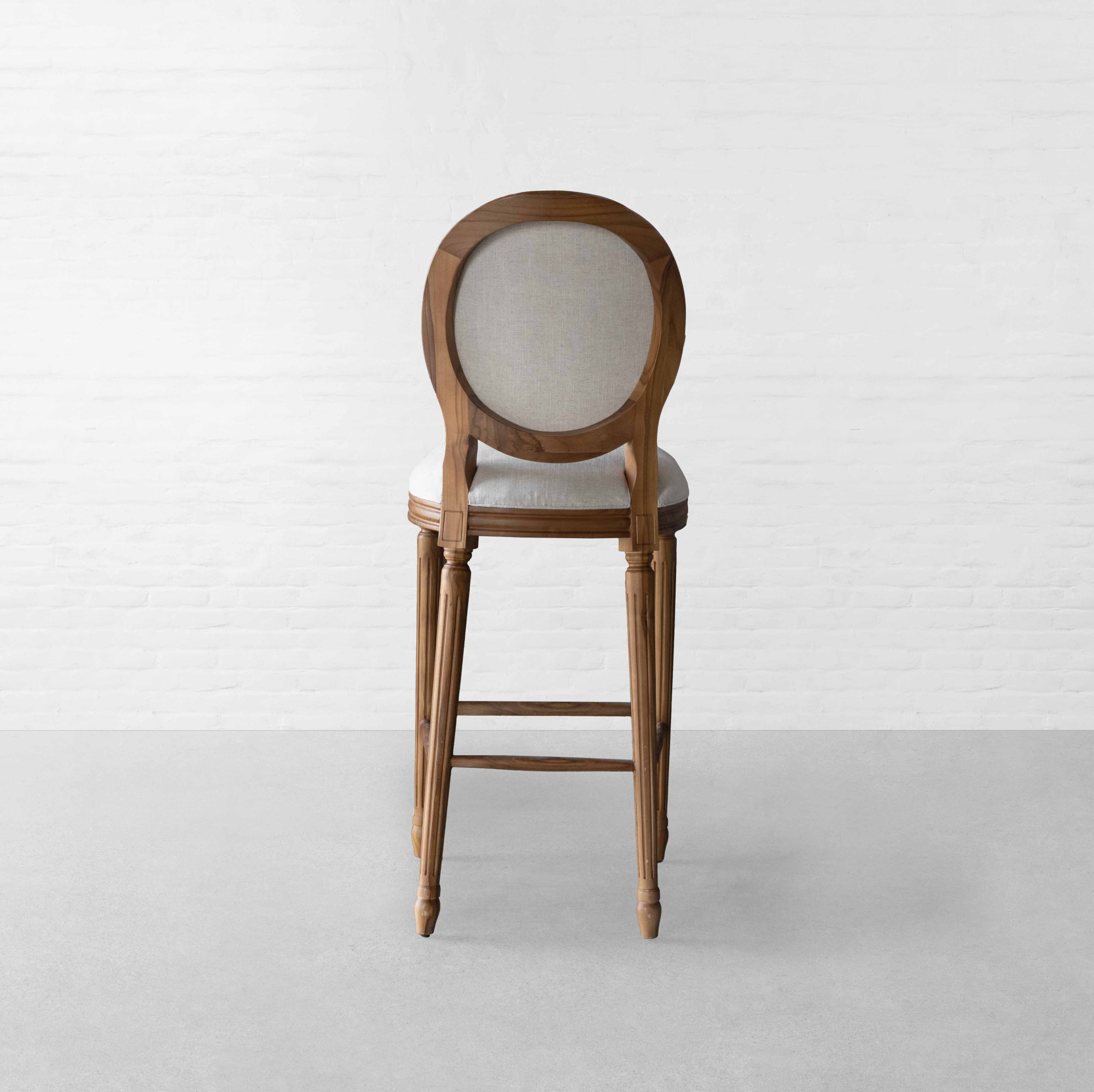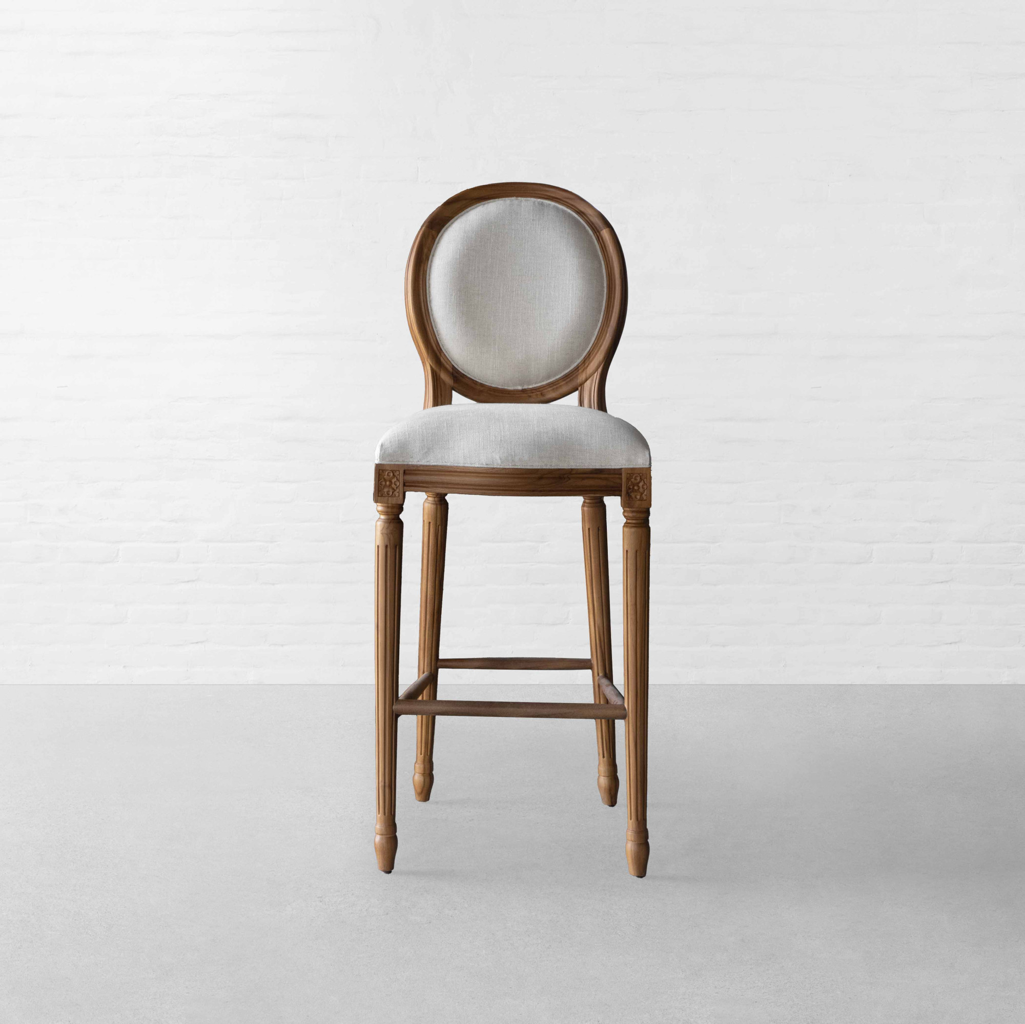 Inspired by the timeless elegance of French design, the Marseille Bar Chair exudes sophistication with its gentle curves and intricate hand-carved details. The rustic wood finish enhances the chair’s artisanal craftsmanship, while the plush cushion on the back and seat provides a welcoming layer of comfort. The integrated footrest, cleverly designed as a sturdy support on the legs, adds both functionality and style. Perfectly balancing modern luxury with a sense of enduring grandeur, this bar chair serves as a stunning centerpiece in any dining or entertaining space. Ideal for those who appreciate richness and subtle refinement, it brings a distinguished elegance to your bar experience.