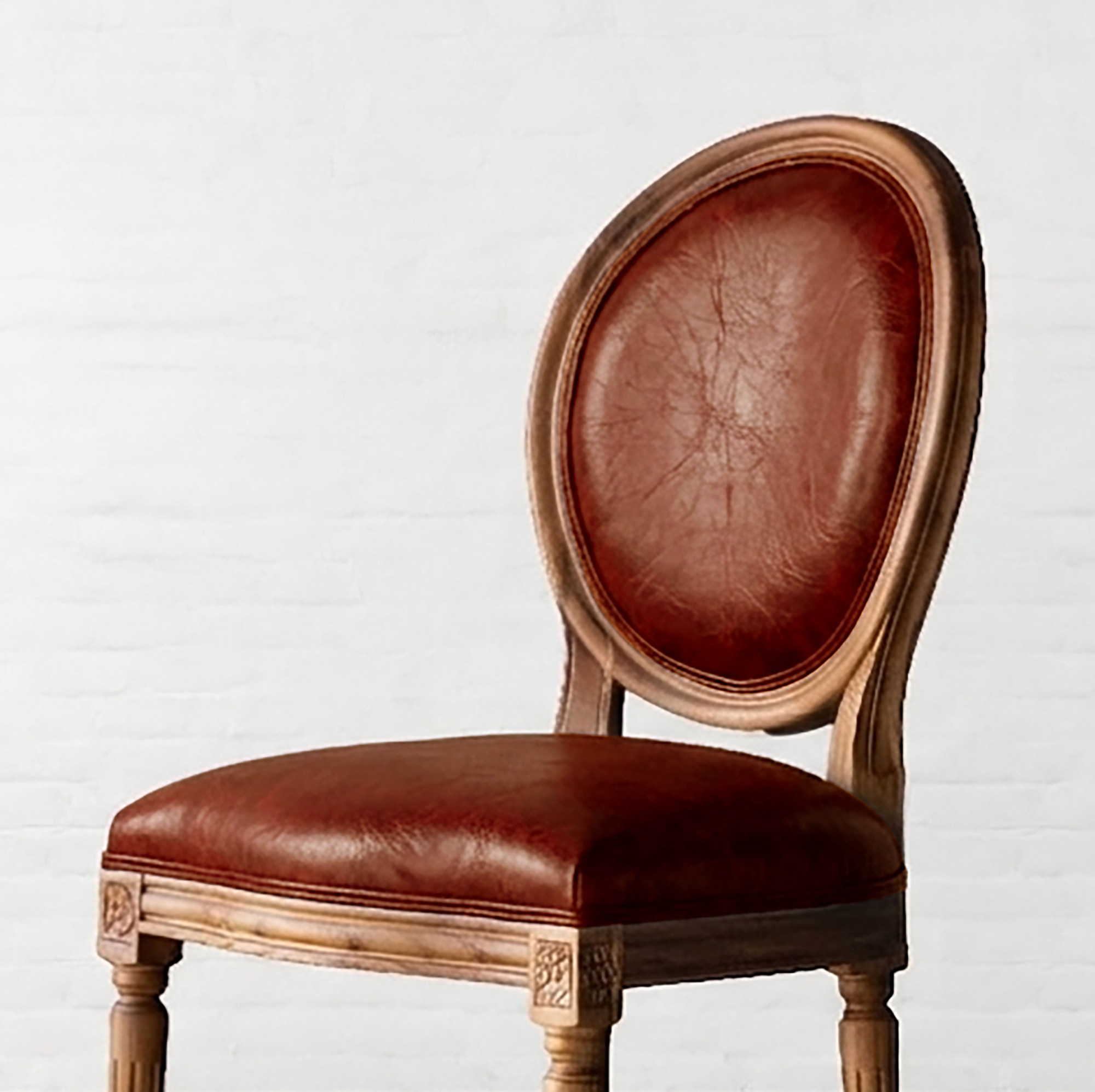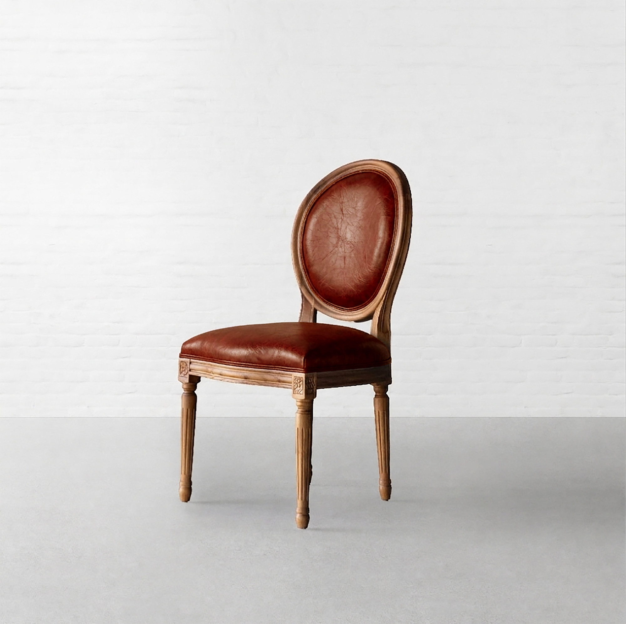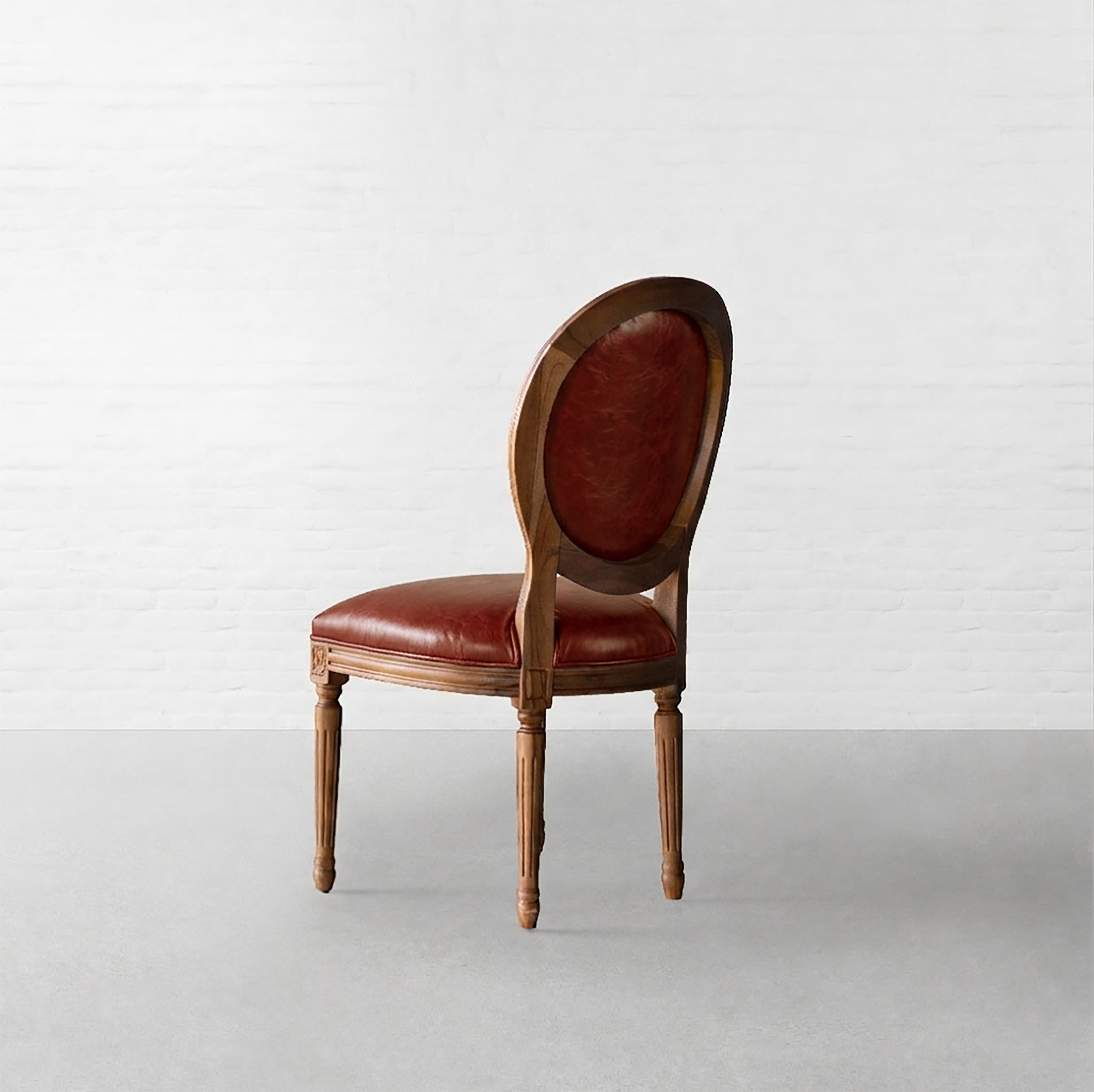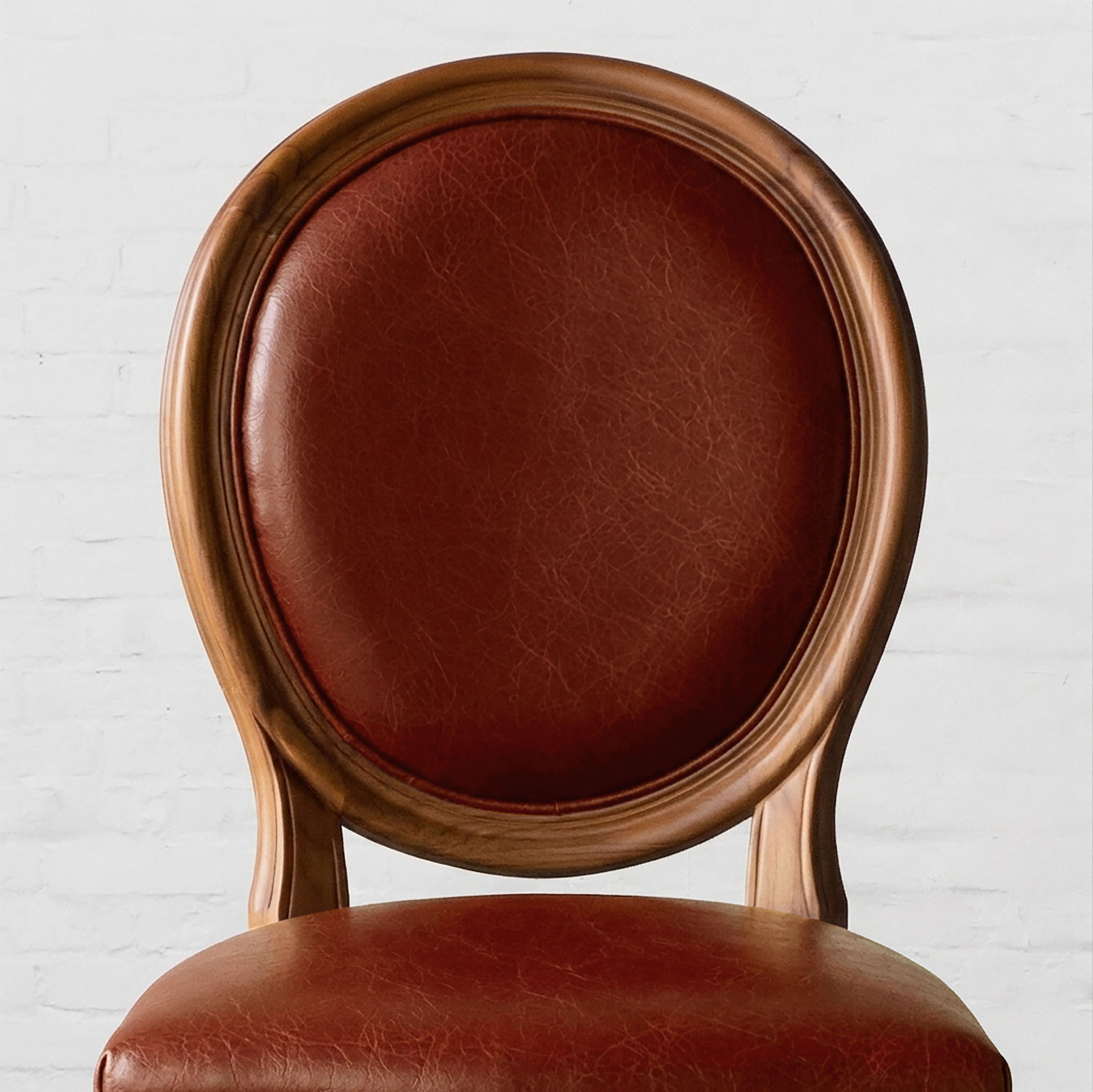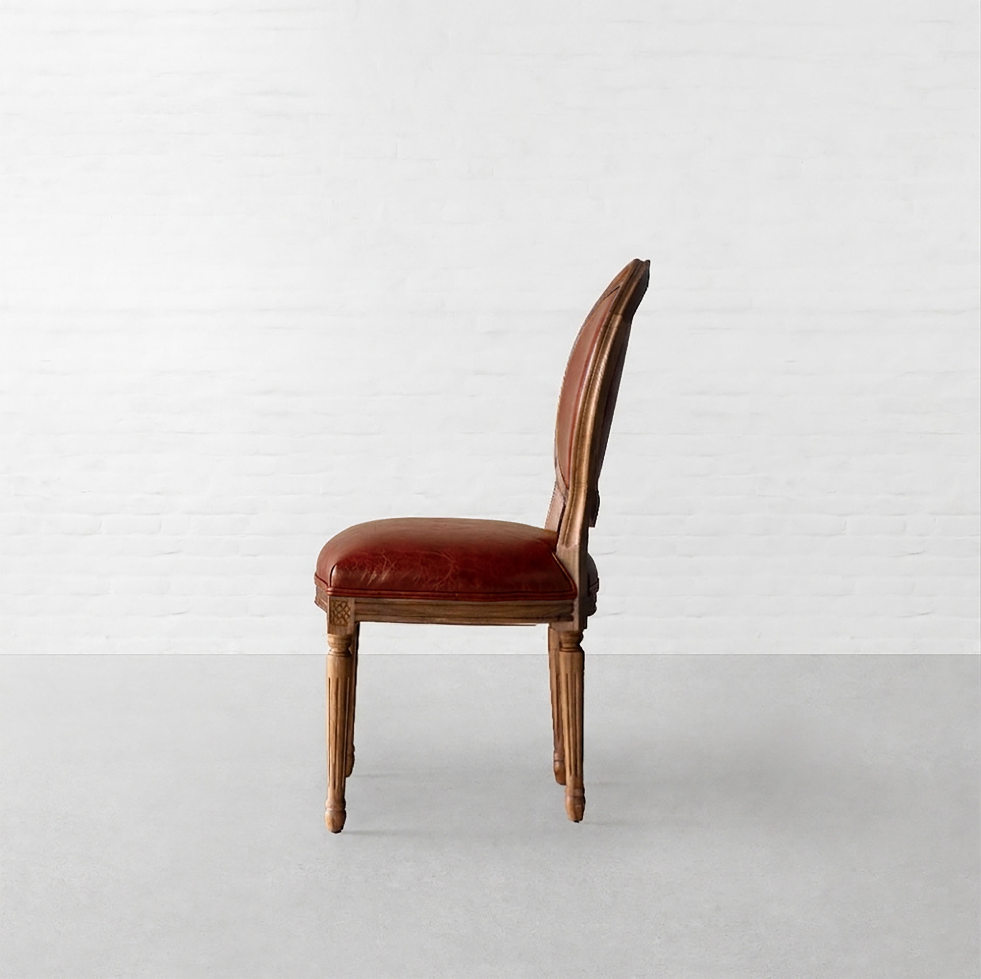 Inspired by the timeless elegance of French design, the Marseille Leather Dining Chair exudes sophistication with its gentle curves and intricate hand-carved details. The rustic wood finish enriches the chair’s artisanal craftsmanship, while the plush cushion on the back and seating adds a welcoming layer of comfort. Perfectly balancing modern luxury with a sense of enduring grandeur, this chair serves as a stunning centerpiece in any dining room. Ideal for those who appreciate both richness and subtle refinement, it brings a distinguished elegance to your dining experience.