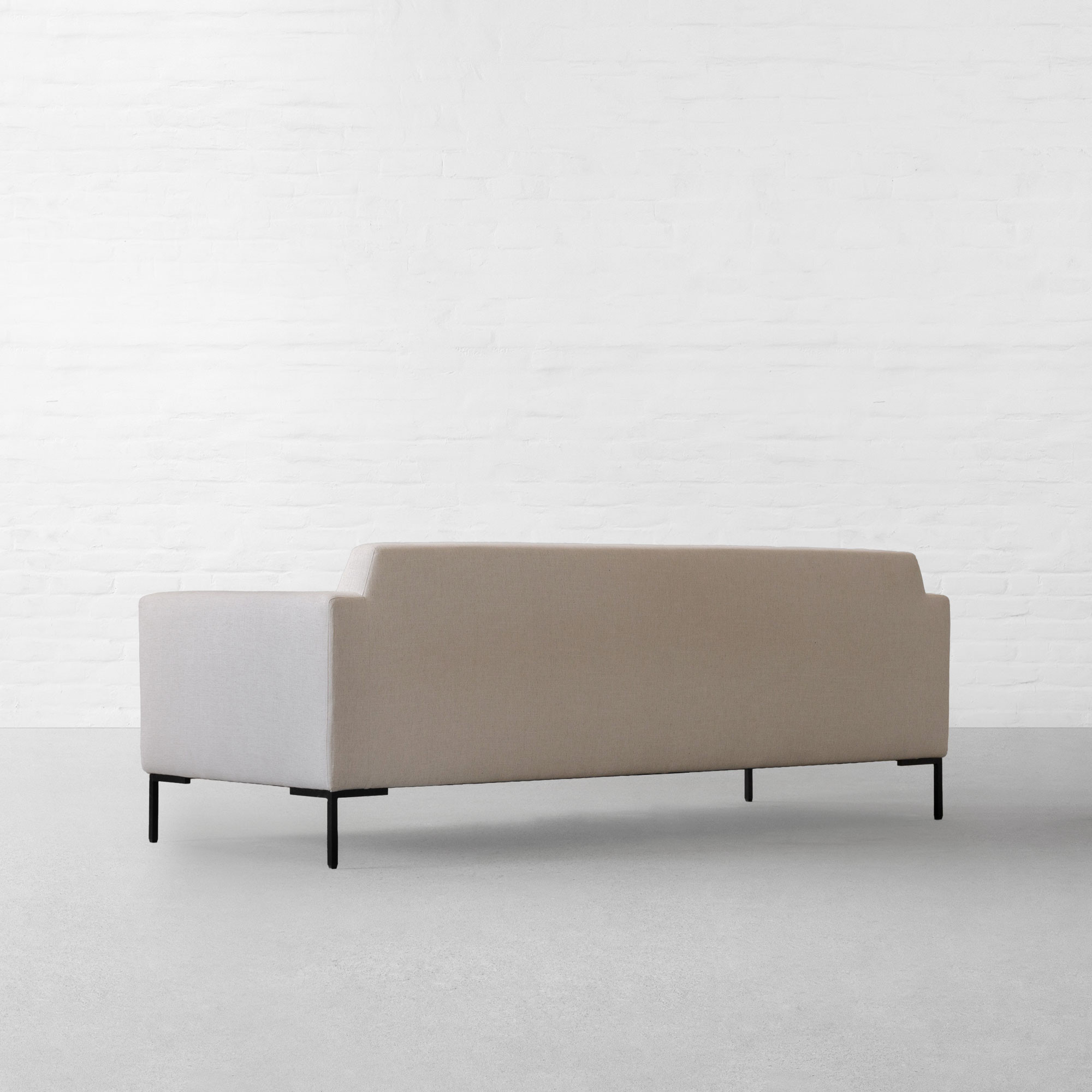 The clean lines designed with an eclectic mix of materials, inspired by sleek aesthetics, juxtaposed with exposed raw metal legs in matte finish and slightly tapered angular arms create modern elegant minimalism.