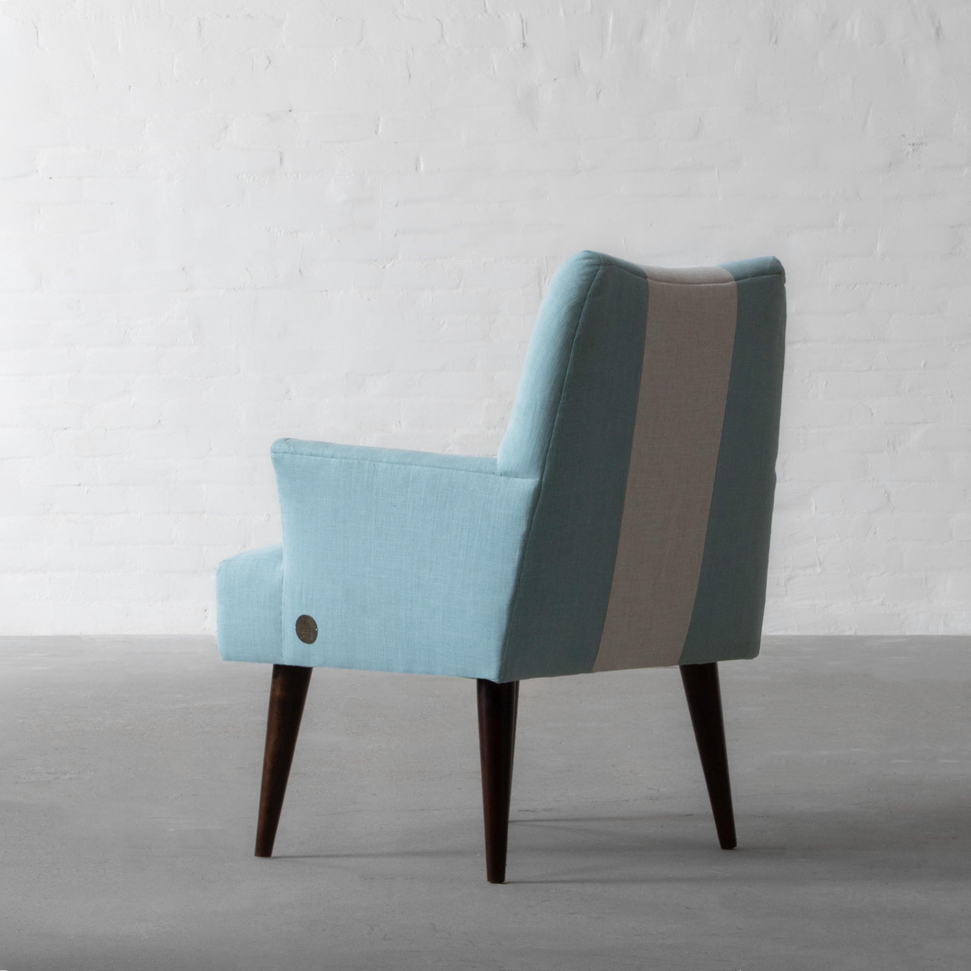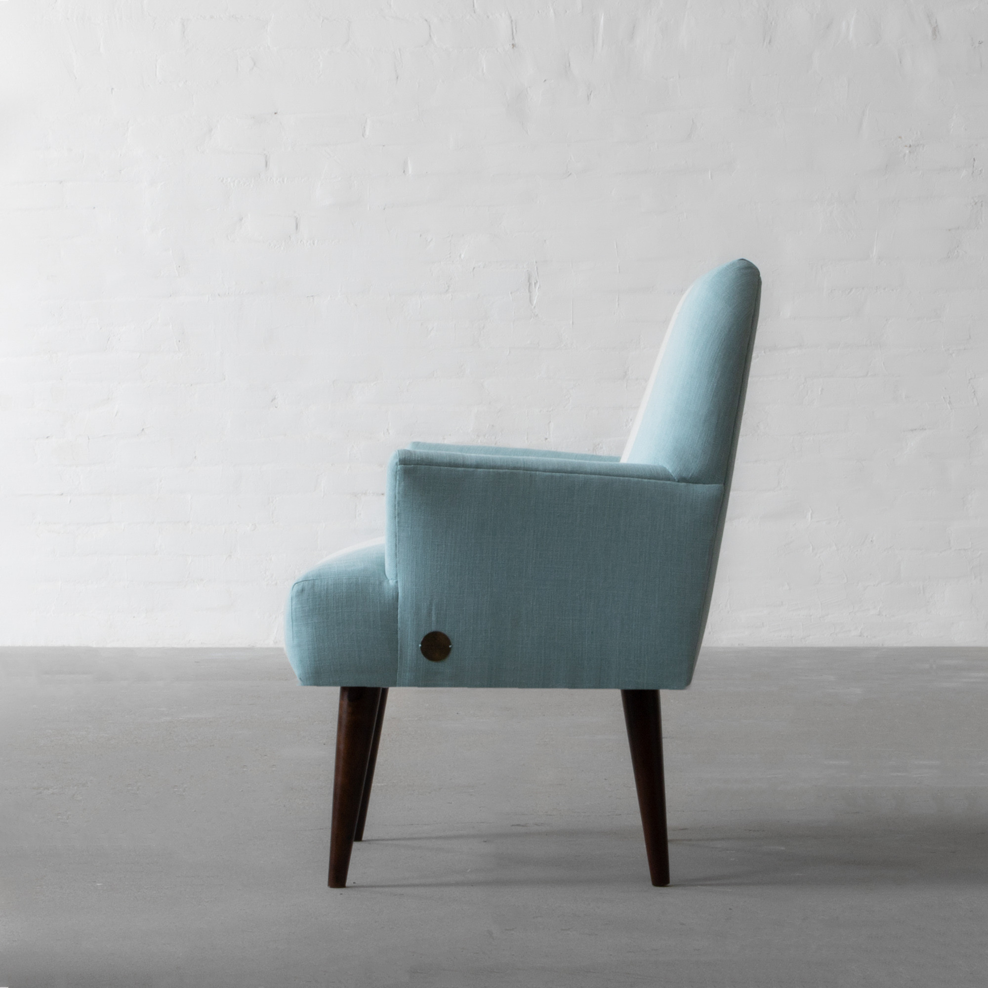 Elegant mid-century modern curve of line and the best of old-school craftsmanship is combined together in our Milan chair. Choose from our range of textured natural fabrics, the tight back streamlined design takes a light and space-saving stance on tall, rounded spindle legs.